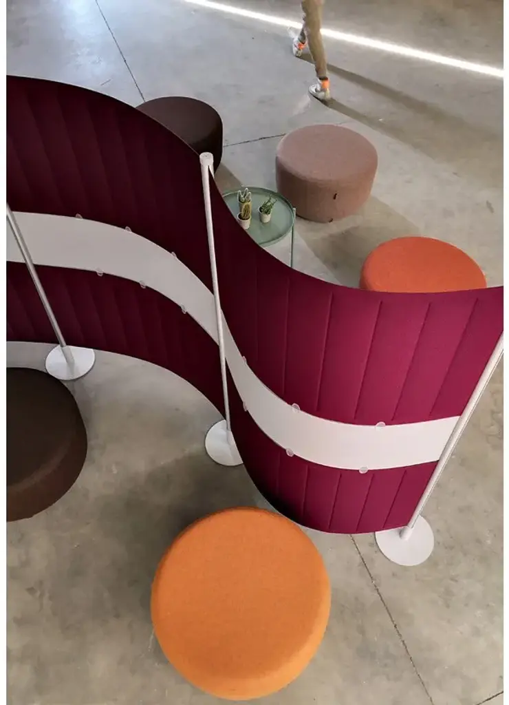 It’s with the panel Ecoflex that Slalom combines in a completely innovative flexibility at 360 °,ecology and sound absorption with the aim to improve the acoustic comfort of the workplace and relax spaces. Due to its linear structure with not constant section, the panel responds dynamically to the absorption of sound, as well as allowing to create spaces in maximum freedom. Ecoflex in addition to being an innovative panel is also an innovative material selected from MaterialConneXion.Acoustic Test: Uni En Iso 354:2003 | Uni En Iso 11654:1998Fire Certificate: B-s2, d0Applications: Compositions, ComponentsFinishes and colors: Trevira CSECOrange is a collection of thermobonded panels, with variable density, which arise from an engineered process.Lightweight, high performance and single material, the panels of this collection offer many options, size, shape and finish.