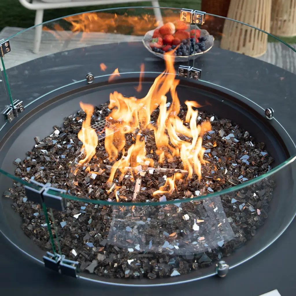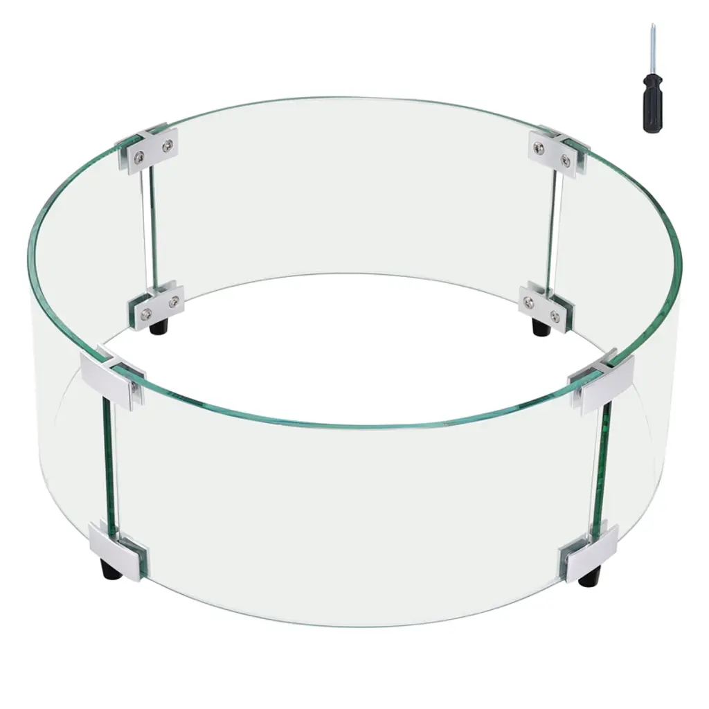 Experience the warmth and beauty of your outdoor fire pit all year round with our glass fire pit screen! The perfect addition to your patio heater, propane fire pit, or smokeless fire pit, this high-quality glass guard offers protection from wind and enhances the beauty of your fire pit. Whether you have a fire pit table or a fire pit bowl, this fire pit accessory will keep the flames burning brightly. The wind guard fire pit glass shield is built to withstand the elements and is easy to clean and assemble. Don't let wind ruin your outdoor gatherings, upgrade your fire pit with a glass flame guard. The outdoor glass fire shield is crafted from durable tempered glass and has stainless steel attachment clips. The glass wind guards for fire pits protect your outdoor fire pit flame from wind and weather in style, ensuring your fire keeps going strong, even on windy evenings. Firepit screens create artistic elegance when the flame reflects off the glass while blocking the wind from interfering with the flame. Not only does the sp screen beautify the flames, but its technical design also allows you to worry less about the breeze and you can relax knowing your friends and family are safe from the fire pits flames. Add the wind guard fire pit glass shield on your propane firepit or natural gas firepit and relax in the warm and cozy ambiance all year round!