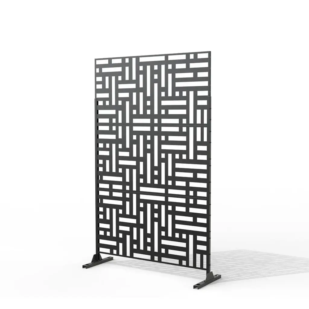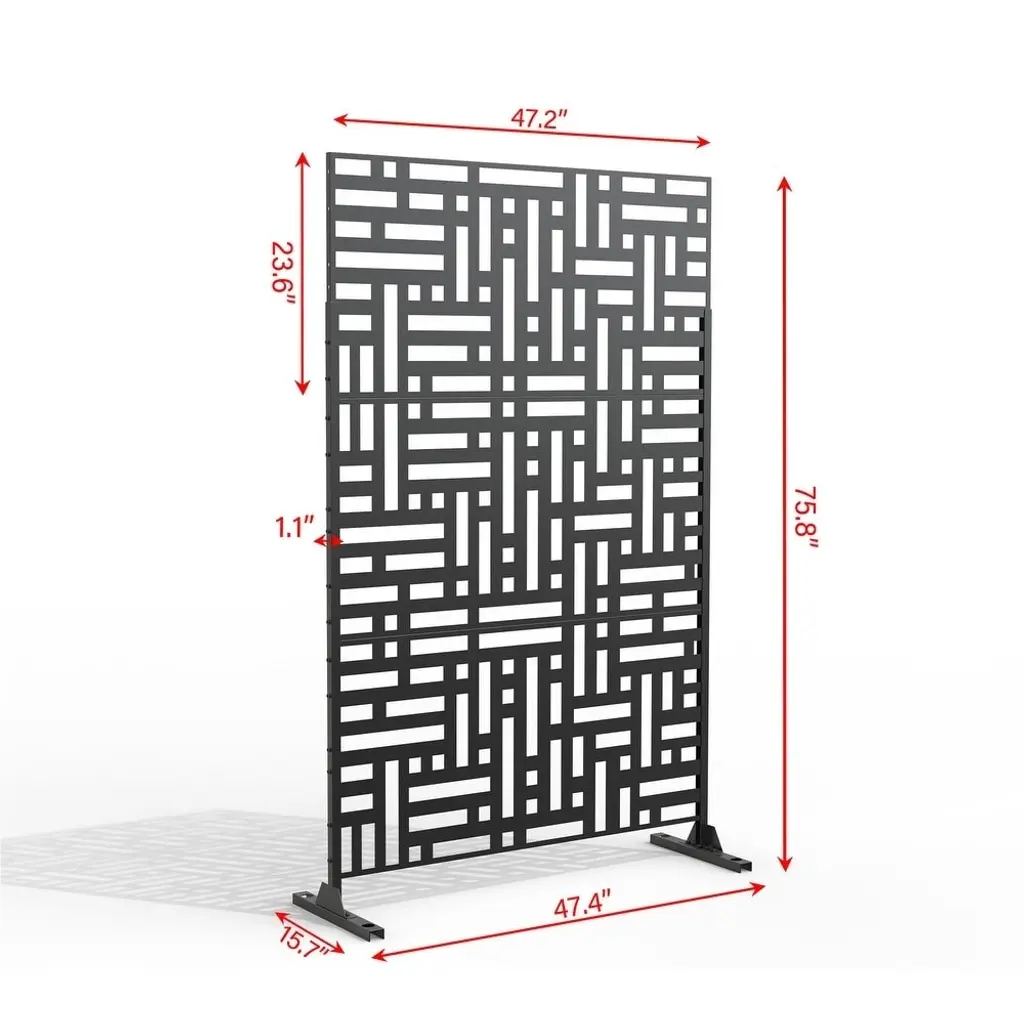 Free Standing Metal Privacy Screen Panel Decorative Outdoor Privacy Screen - 72"h X 47"w - Black-04b