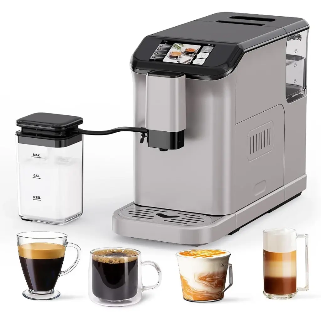 Fully Automatic Espresso Machine with Grinder and Milk Frother, Touchscreen Control, 20 Bar Pressure, 1.5L Detachable Water Tank, One-Touch Latte & Cappuccino