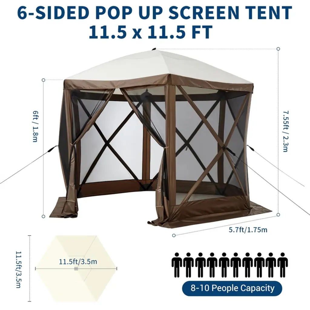 Gazebo Screen Tent With Mosquito Netting, 6 Sided Pop Up Canopy Shelter, With Carrying Bag, Ground Stakes, For Outdoor Camping, Lawn, Backyard