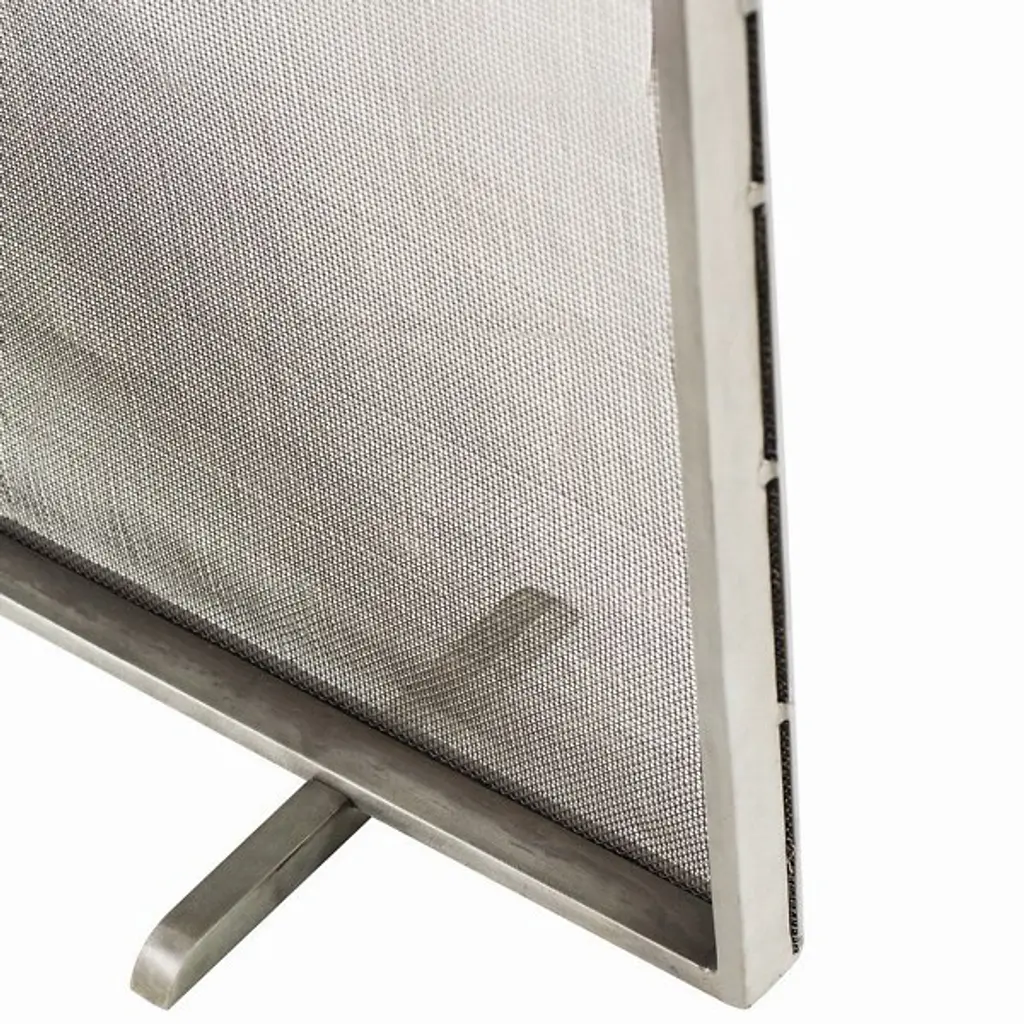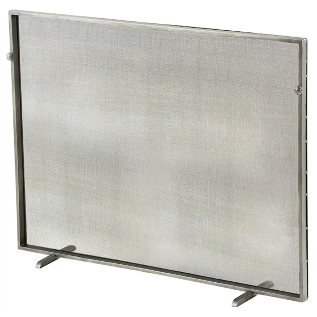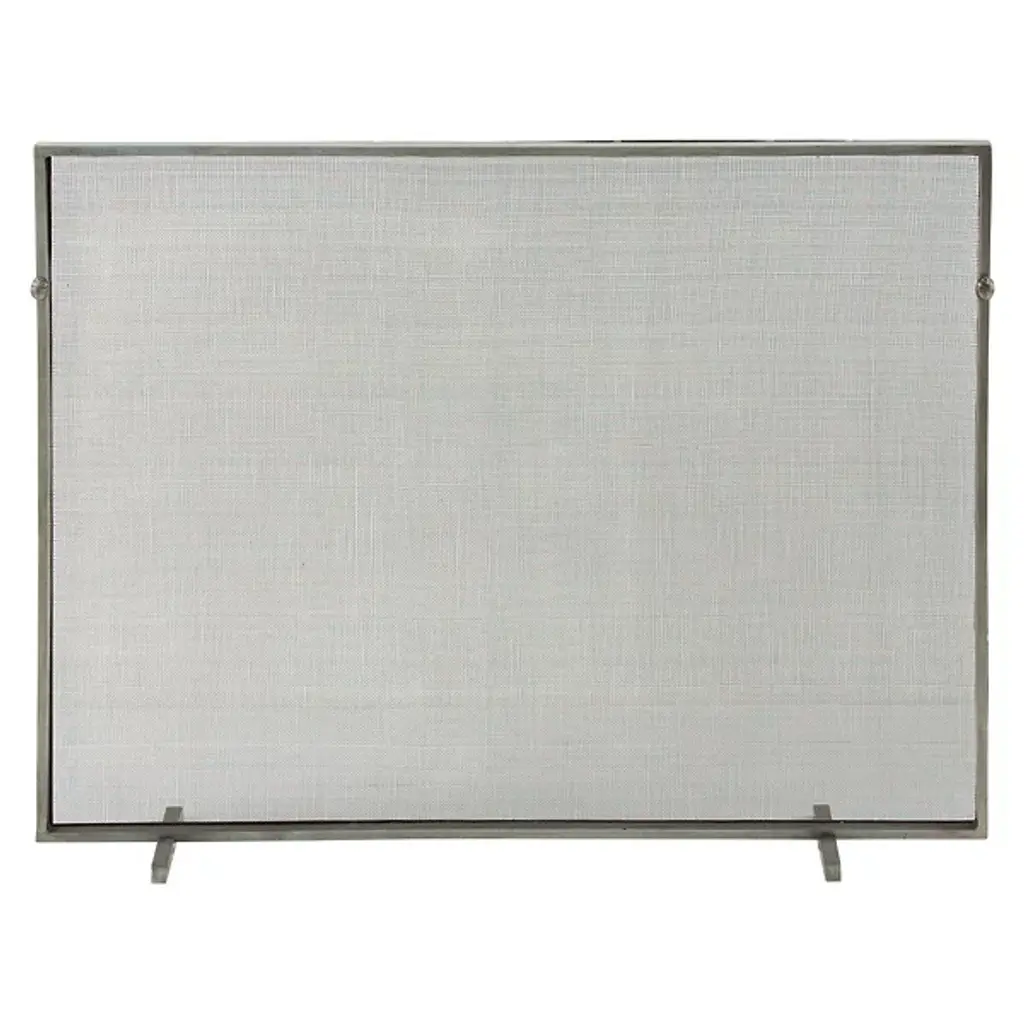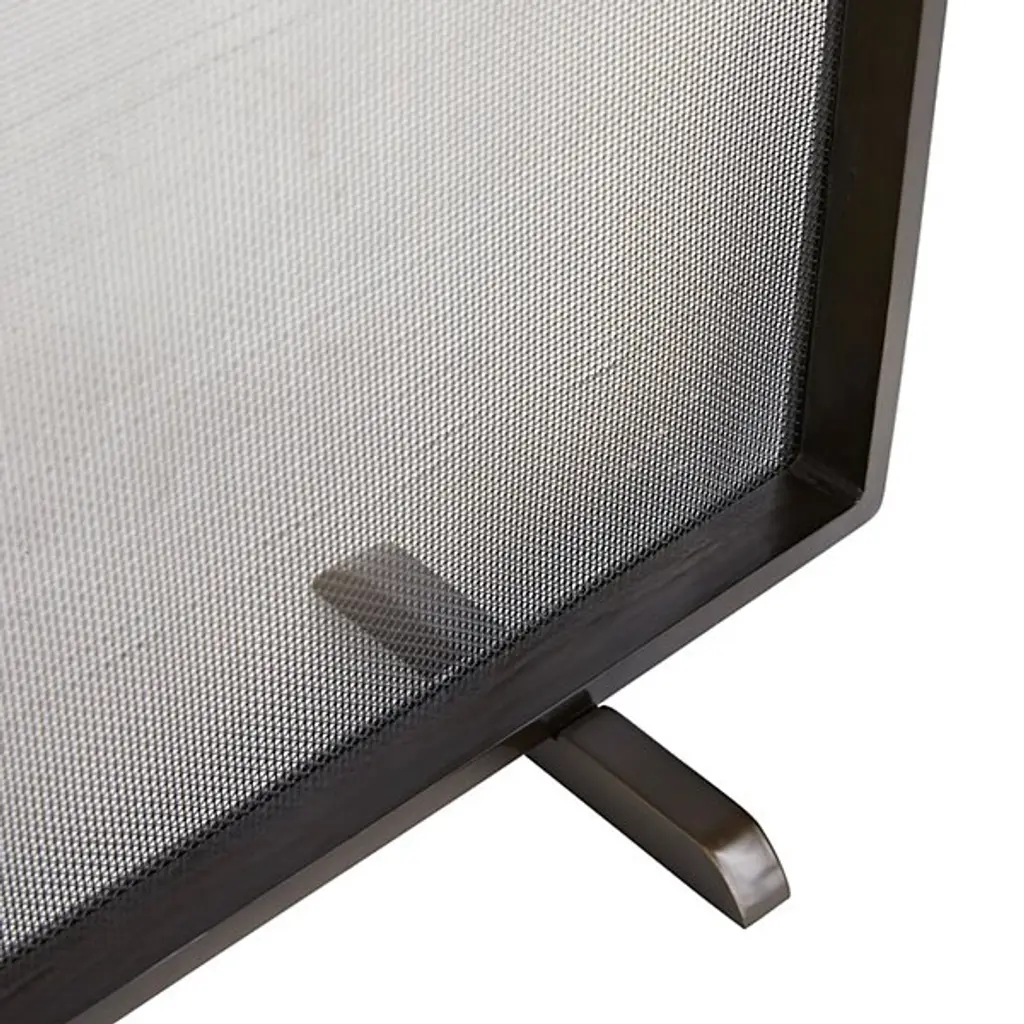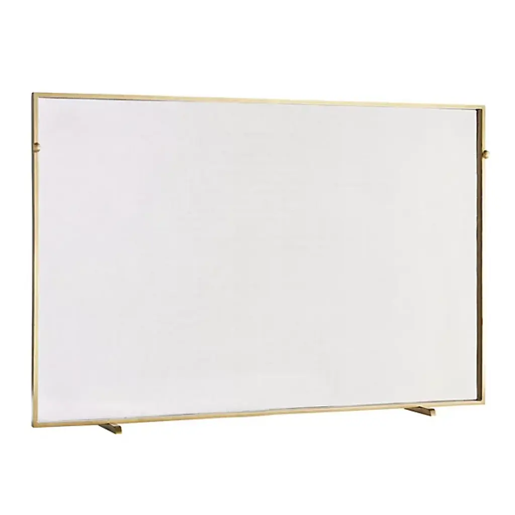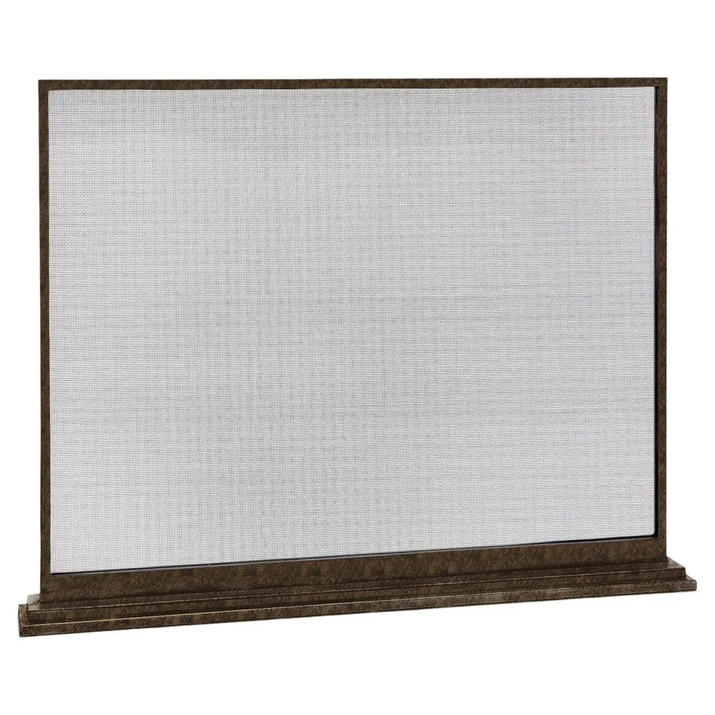 Protect your home with the simple, yet elegant Gita Fire Screen from Arteriors. This is a distinguished modern piece that beautifully accents the home while shielding it from wayward snaps and crackles from the fireplace. The thin frame is made of smooth brass while the mesh is made of dense iron. A knob on either side contains subtle details shaped into Egyptian scarabs which are known for hope and good luck.