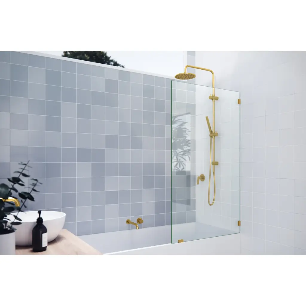 A beautiful fixed shower panel over your bathtub is a simple way to add a luxurious feel to your bathroom. Each frameless 3/8" tempered glass panel comes in a standard 58.25" height. Glass is treated on both sides with coating, which aids in repelling water and soap residue, allowing the panels to be fully reversible. In addition, our superior quality solid brass hardware is available in a variety of color finishes to suit any bathroom. With our extensive range of fixed panel sizes, the Vela by Glass Warehouse is a bathtub shower enclosure designed to allow natural light to flood through your bathroom, making your space feel bigger and brighter.Glass Warehouse GW-BF-34 Features:Glass Warehouse GW-BF-34 Specifications: