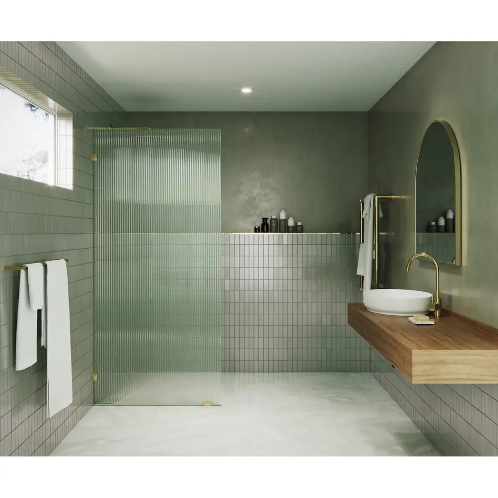 A beautifully crafted design piece with a stylish, elegant feel, the Gaia is a fluted glass, fixed shower panel. Taller than most competitor shower panels, our frameless 3/8” tempered glass panels come in a standard 78” height. Glass is treated with coating, which aids in repelling water and soap residue. In addition, our superior quality solid brass hardware is available in a variety of color finishes to suit any bathroom. With our extensive range of fixed frameless glass panel sizes, the Gaia by Glass Warehouse is an enclosure designed to diffuse the light in your bathroom, maintaining privacy as you shower while maximizing the natural light.Glass Warehouse GW-FL-34 Features:Glass Warehouse GW-FL-34 Specifications: