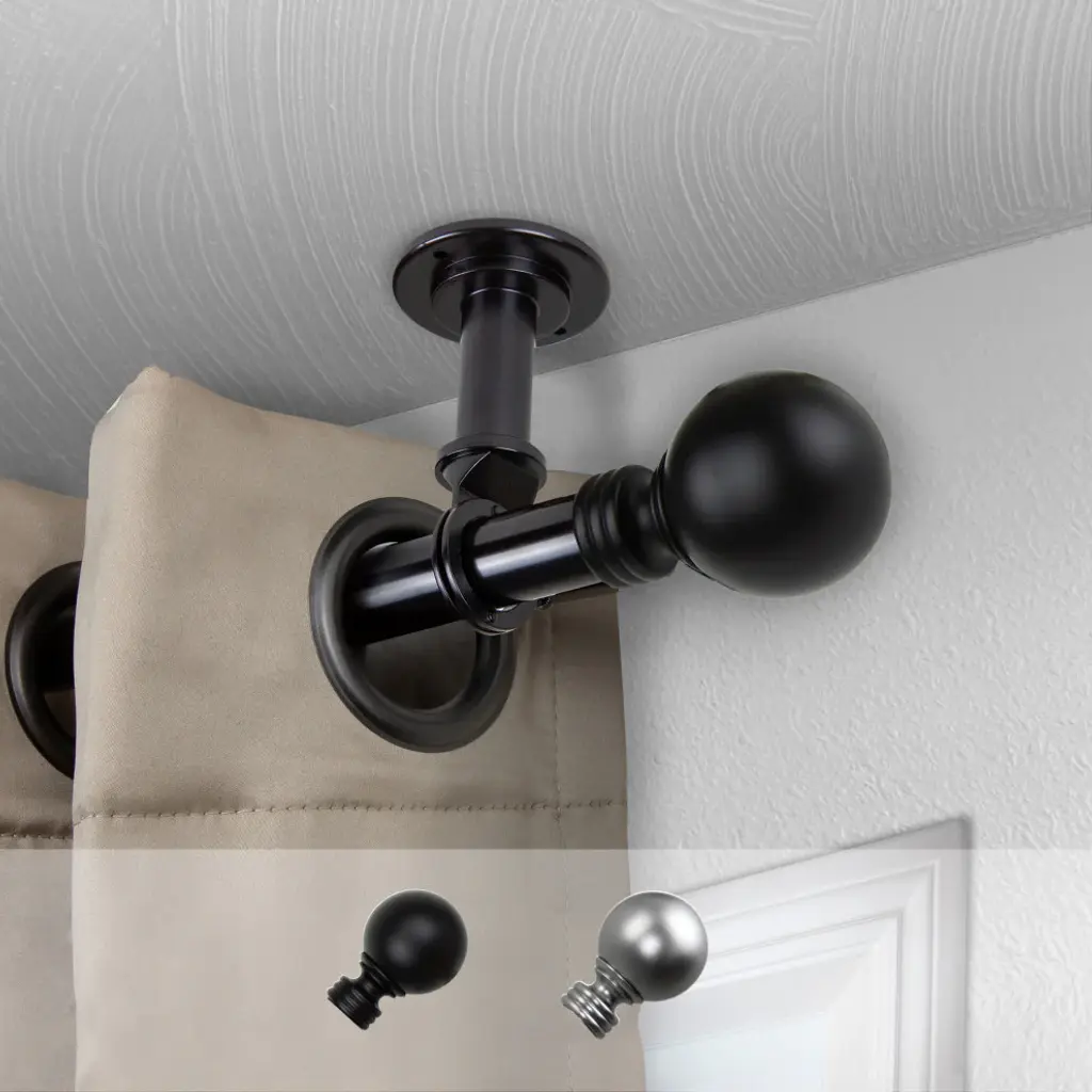 Includes: 1" rod, ceiling mounting brackets, and finialsProjection: 3.625"Finials measure: 3"x2.375"x2.375"