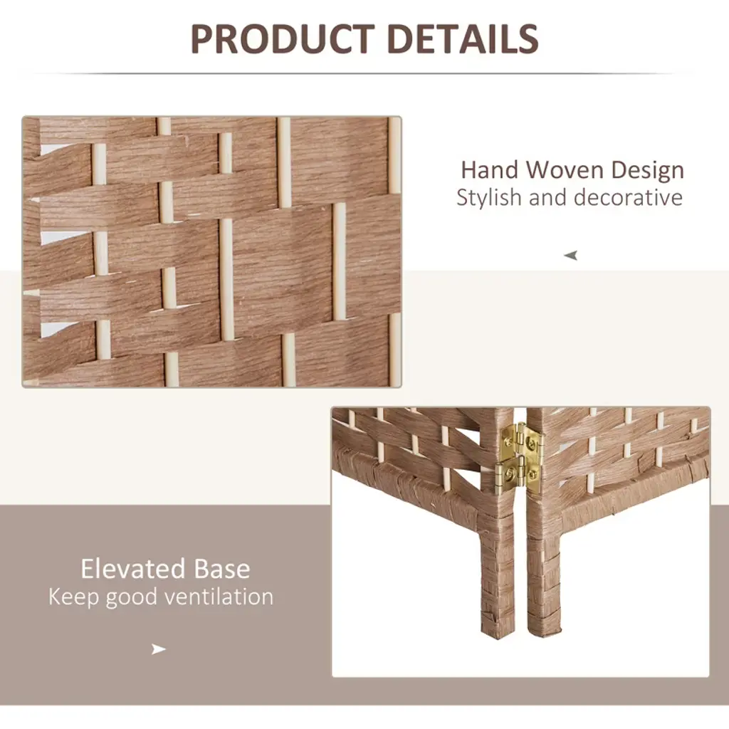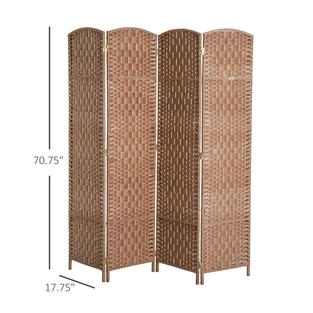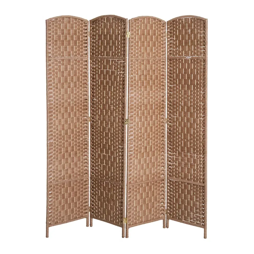 Gulches 6' Tall Wicker Weave 4 Panel Room Divider Privacy Screen For Home Office - Natural