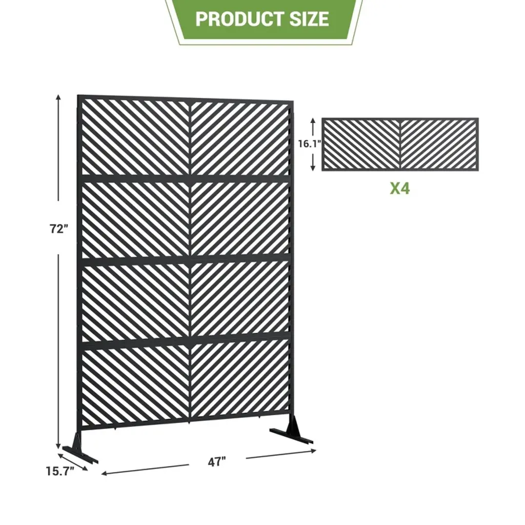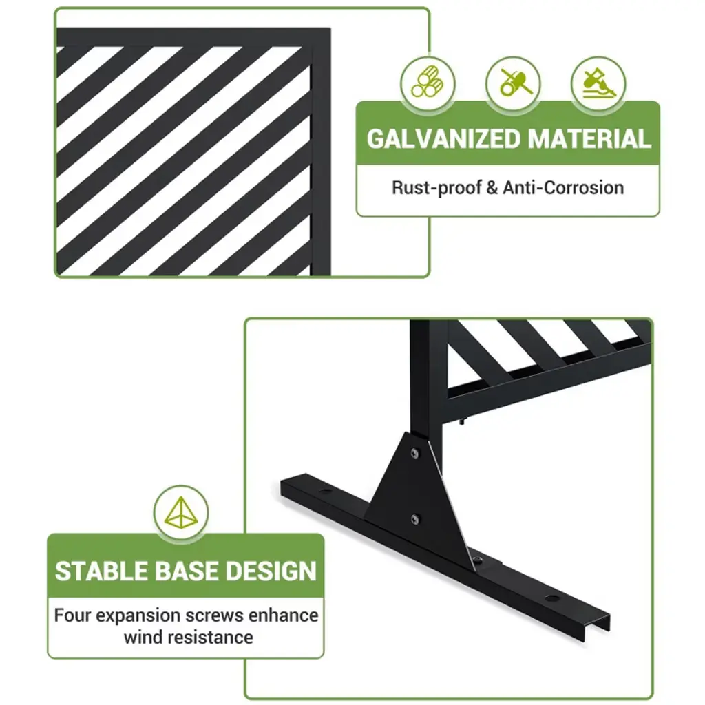 Our 72" privacy screen creates a secluded space for morning coffee or evening gatherings, blocking neighbors' views while enhancing your outdoor living area with style. Built with premium materials, the screen withstands rain, UV rays, and humidity. Its rust-free powder-coated finish requires zero maintenance, staying sleek year after year. Doubles as a vertical garden frame or twinkle light backdrop, transforming blank patio walls into eye-catching, conversation-starting features.