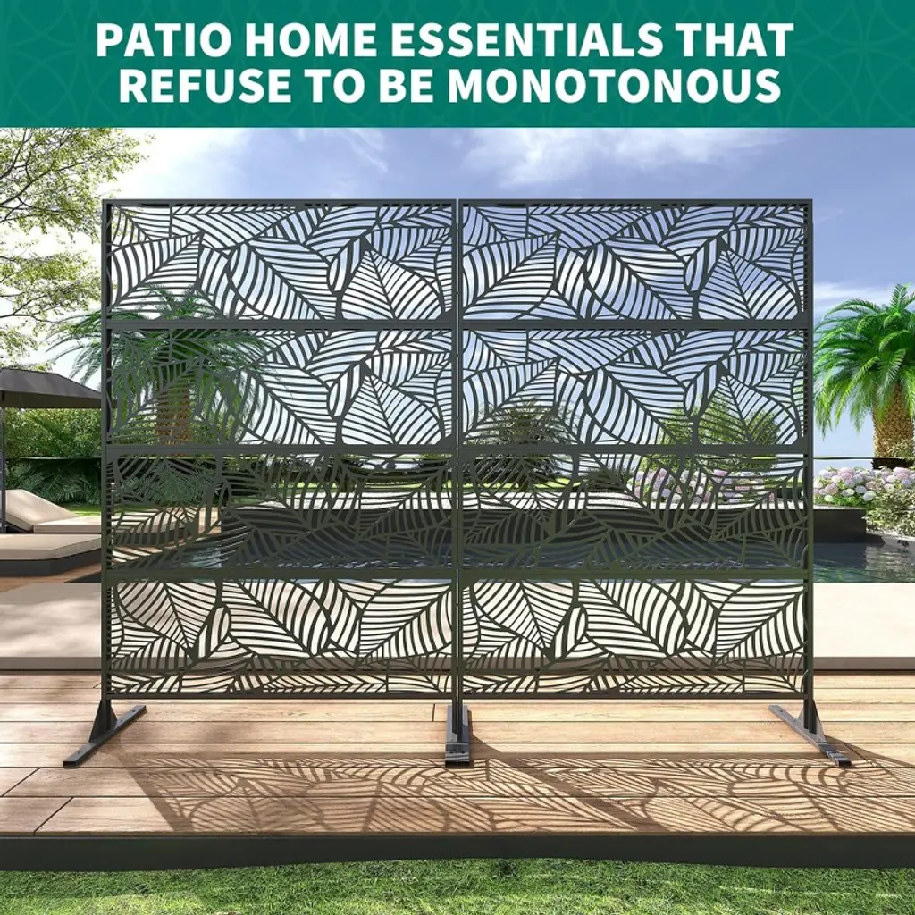 Gustowave Metal Privacy Screen With Stand - 71"x 46" Freestanding Outdoor Decorative Privacy Panels – Weather-resistant Rustproof Room Divide, Leaf