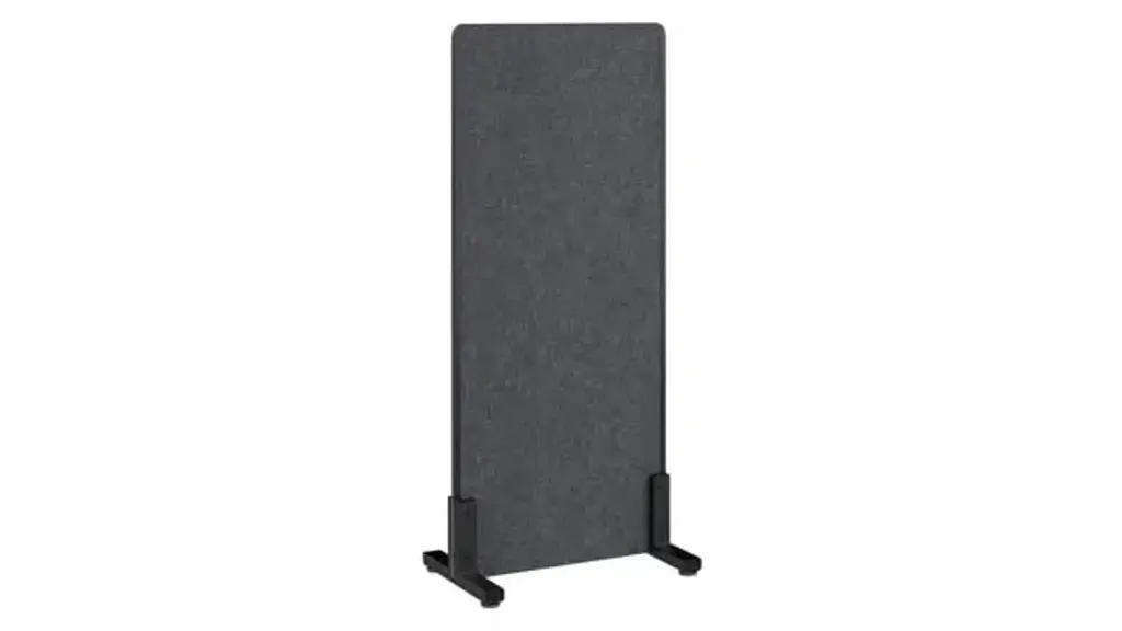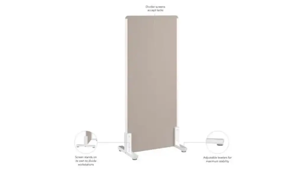 The Bush Business Furniture 24" W x 55" H Freestanding Privacy Screen is a great way to enhance productivity and focus in any workplace. The divider screen stands on sturdy metal feet to create a visual barrier between workstations while still allowing for easy communication and collaboration between team members. The feet include adjustable levelers to compensate for uneven flooring, ensuring maximum stability on both hard and carpeted surfaces. Acoustic panels further limit distractions by dampening sound in a busy work environment. The desk partitions can also accept tacks to keep important reminders within eyesight or to give each cubicle a personal touch with pictures and decorations. Choose from Warm Beige cubicle panels with White feet or Cool Charcoal panels with Black feet to find the perfect look for any space. This standing privacy panel has been meticulously tested to meet or exceed ANSI/BIFMA x5.6 standards for safety and performance. See the full line of BBF products to complete your office with coordinating computer desks, chairs, storage, and more. Overall Dimensions: 23.9" W x 14.96" D x 54.84" H. Ships ready for easy assembly.