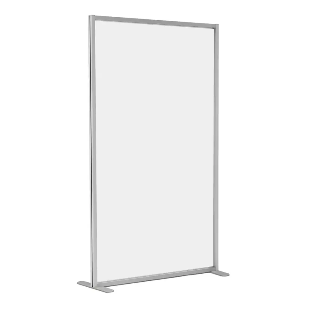 InUno - Self-supporting methacrylate partition panel for dividing workstations and desks, even temporarily. It is easily positioned and can be moved when desired. Neutral bisected colour. Simple appearance that suits offices, schools, doctors' offices, waiting rooms and many other environments.- Ideal as a protective partition- Does not obscure the environment- Easy to move when desired- Easy to assemble independently- Choose the transparency of the room divider.InUno is a collection of divider panels, exhibition display panels, notice racks, posters, brochure racks, totems and signage, and lots of solutions. It is a line that is fully configurable in structure, size, colors, and prints to meet different style, space, and brand requirements.