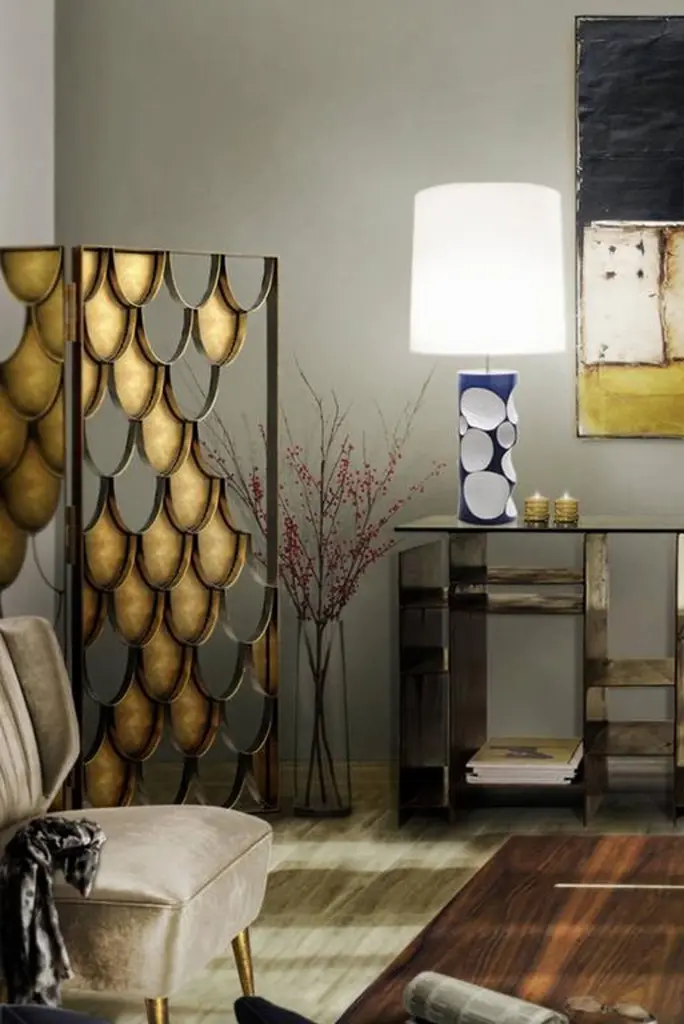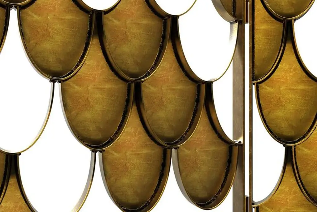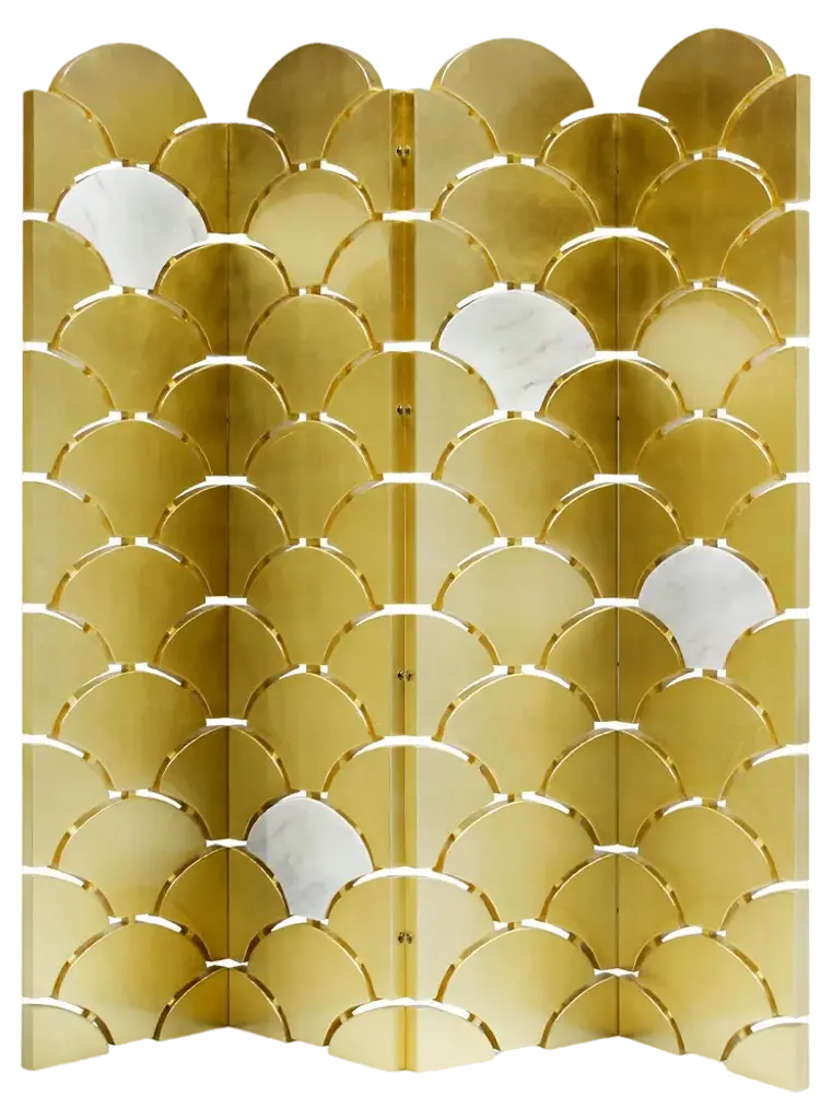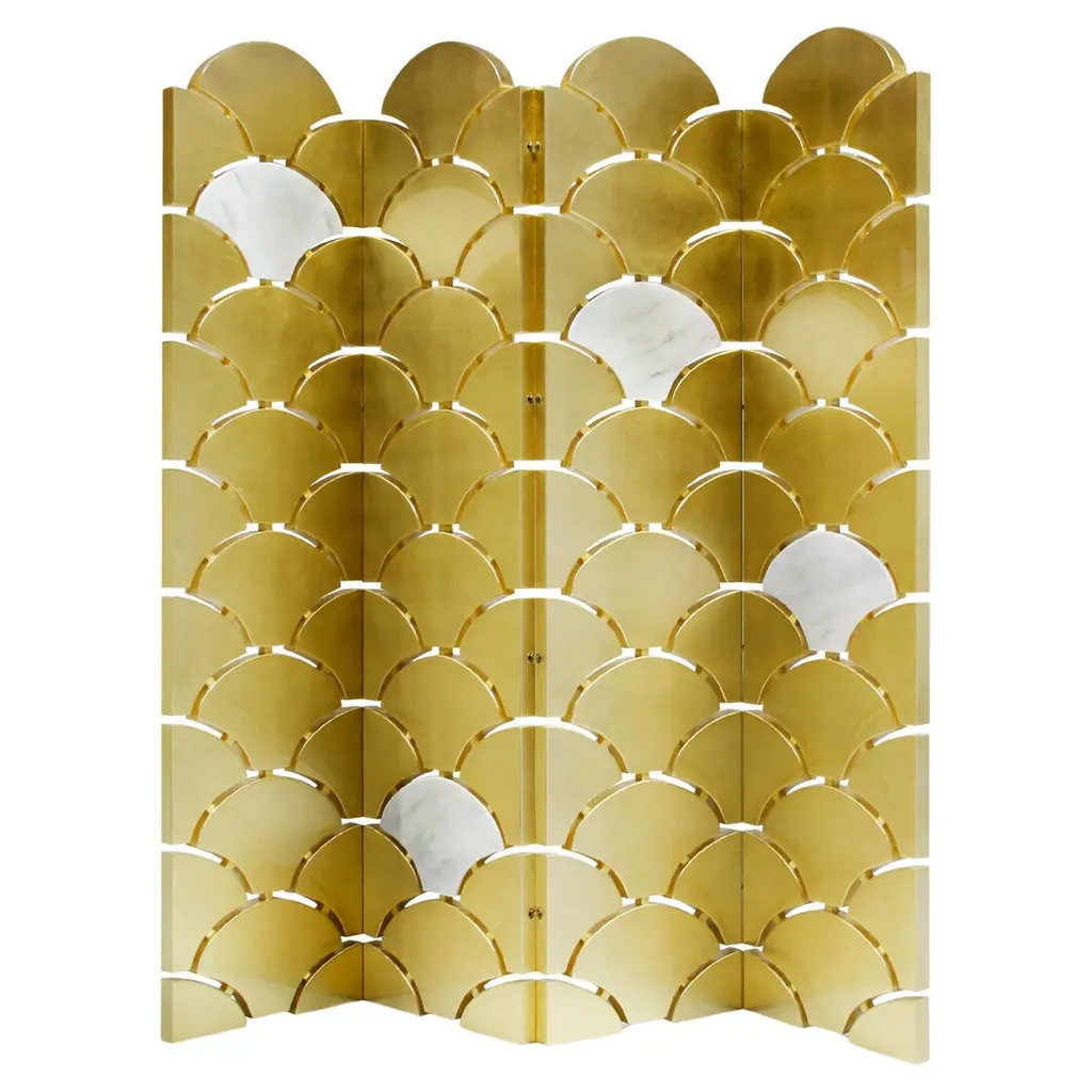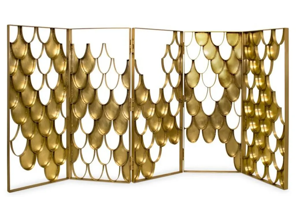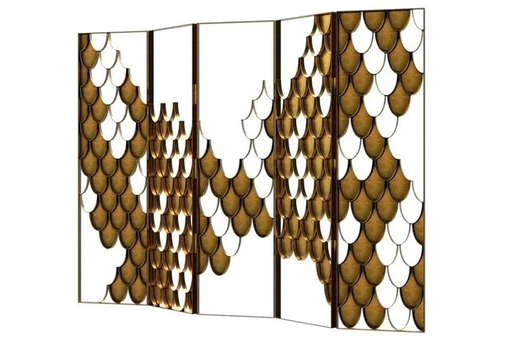 Screen Japanese Carpus in brushed aged brass,with 5 folding panels, exceptional piece.