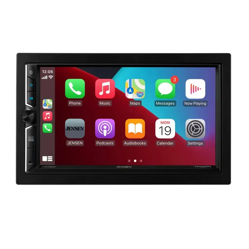 The Jensen CAR714MW is a versatile and feature-rich 7” touchscreen car or truck media receiver designed to elevate your in-car entertainment experience. With a high-resolution 1024p x 600p LED-backlit display, this unit ensures that all visuals are sharp, vibrant, and easy to navigate, making it perfect for managing your media, navigation, and calls on the go. What sets the CAR714MW apart is its comprehensive compatibility with both Apple CarPlay and Android Auto, offering both wired and wireless connection options. This high-level compatibility ensures that no matter what smartphone you use, you can seamlessly integrate it with your car’s audio system, allowing you to easily access apps, music, and calls. Features: iDatalink Maestro Radio Replacement Interface Module compatible: keep your current car digital convenience features 7” LED Backlit Touchscreen: High-resolution display (1024p x 600p) for crisp and clear visuals. Apple CarPlay & Android Compatibility: Supports both wired and wireless connections for seamless smartphone integration. SiriusXM-Ready: Connect to SiriusXM with a subscription (tuner sold separately) for premium satellite radio. Built-in Bluetooth: Enjoy hands-free calling, music streaming, and comprehensive phonebook support. High Power Output: 240 Watts (60 W x 4) MOSFET power for powerful and dynamic sound. Specifications: Front Panel: Touchscreen Phone Connectivity: Bluetooth, CarPlay, Android Satellite Radio: SiriusXM Ready (Tuner Required) Bluetooth Features: Audio Streaming, External Microphone, Hands-free Calling, Phonebook Support, Voice Activation Button AM/FM Receiver: 30 Station presets (18FM/12AM), RDS Inputs: Audio / Video (Rear), Front View Camera, Rear View Camera, USB x 2 (Rear) RCA Outputs: 3 Pair (Front + Rear + Sub) USB Charge: 2.1A File Playback: FLAC, MP3 Playback: Digital Audio, Digital Multimedia Audio Processing: 10 Band EQ, 8 EQ Presets Steering Wheel Control Compatible: Yes – Adapter Required
