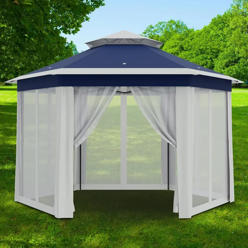 Jojoka 13x13ft Pop Up Gazebo Screen Tent,hexagonal Instant Gazebo With Mosquito Netting,6 Sided Sun Shelter With Mesh Netting,blue