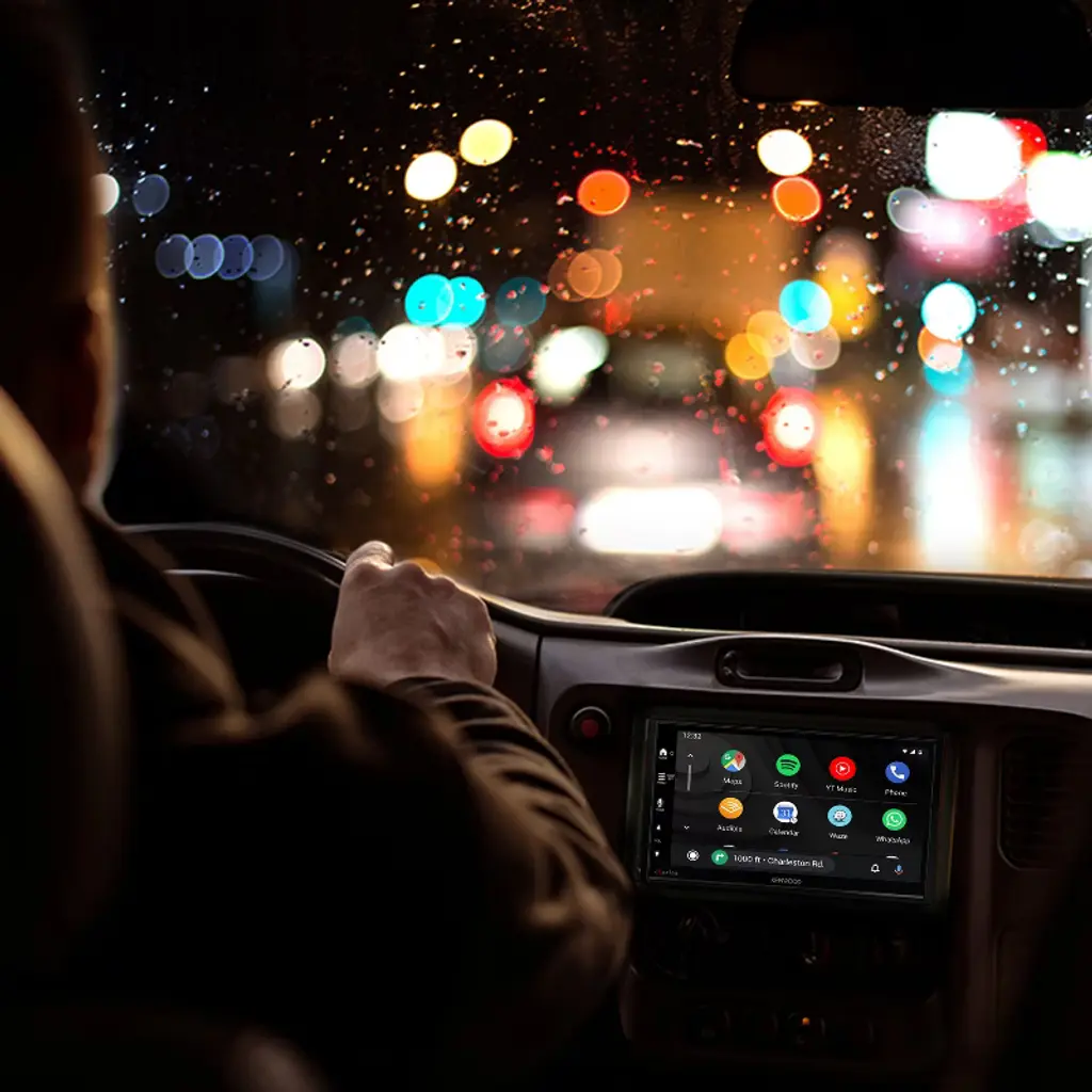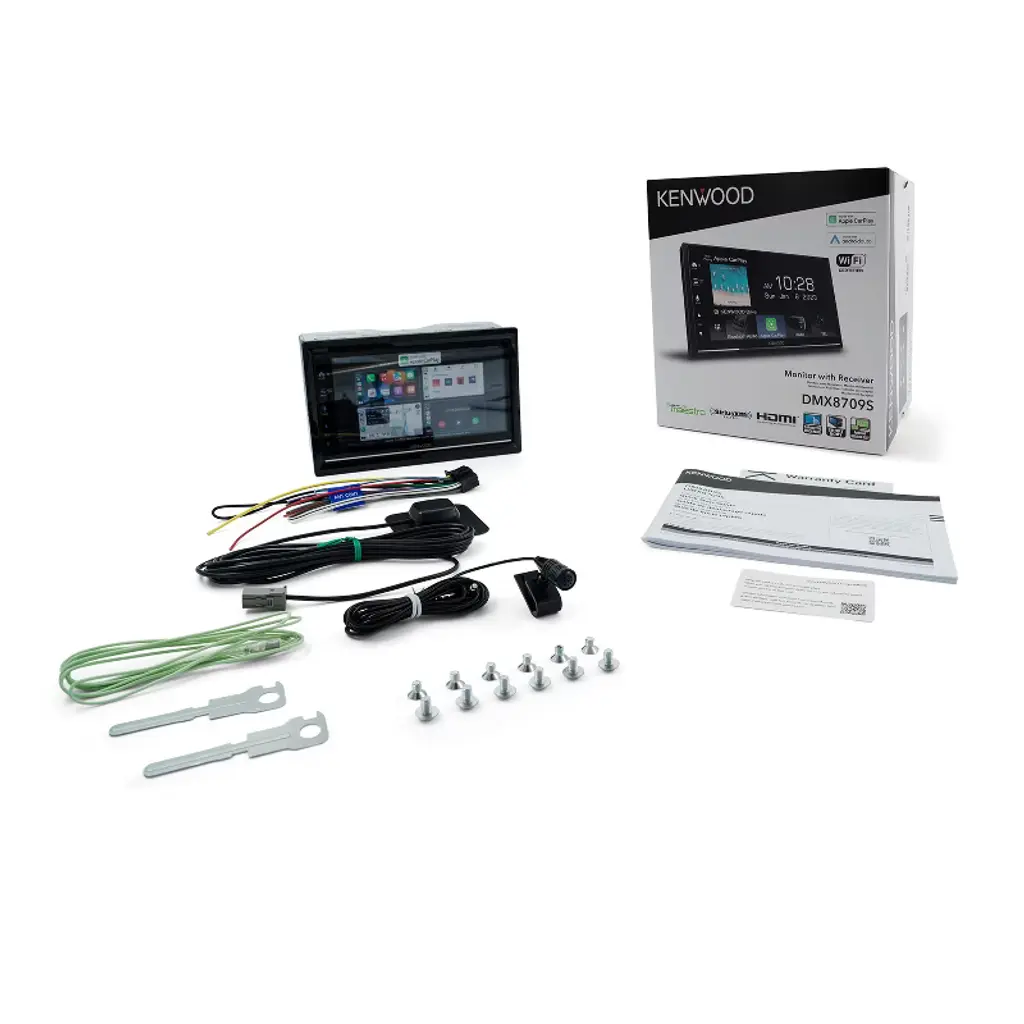 Upgrade your in-car entertainment with the KENWOOD® DMX8709S, featuring a vibrant 6.75-in. capacitive touchscreen that provides easy access to your favorite music, navigation, and hands-free communication. This advanced digital media receiver supports both wired and wireless Apple CarPlay® and Android Auto™, making it effortless to access your smartphone's most essential apps. With built-in Bluetooth®, you can connect 2 phones simultaneously for hands-free calls and wireless music streaming. The DMX8709S also supports SiriusXM® radio (tuner and subscription required), offering endless entertainment options. Enjoy superior sound quality with the 13-band equalizer, digital time alignment, and 3-way crossover, allowing you to customize your audio experience. Easily expand your vehicle’s setup with 3 camera inputs and micro HDMI® for 640 x 480p or 720 x 480p video playback. USB playback includes video files up to Full HD and 192-kHz/24-bit audio files. Multiple camera inputs provide enhanced vehicle safety, while compatibility with iDatalink® Maestro® ensures seamless integration with factory features in select vehicles. Whether you're streaming music or expanding your car’s system, the DMX8709S offers top-notch functionality with a sleek double-DIN design.