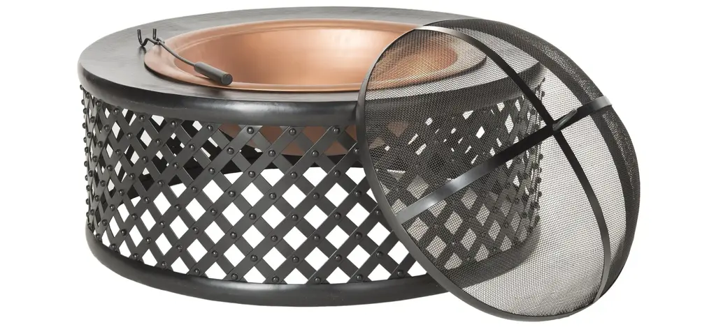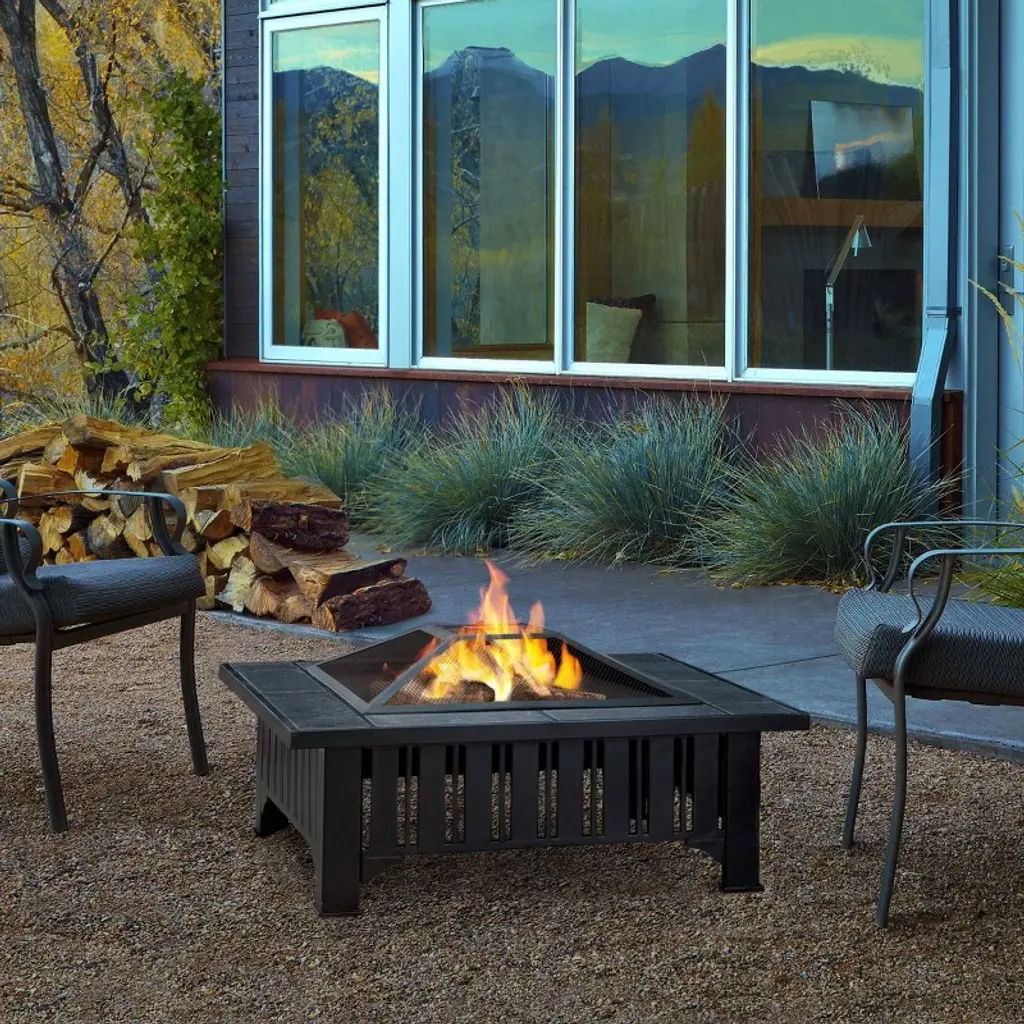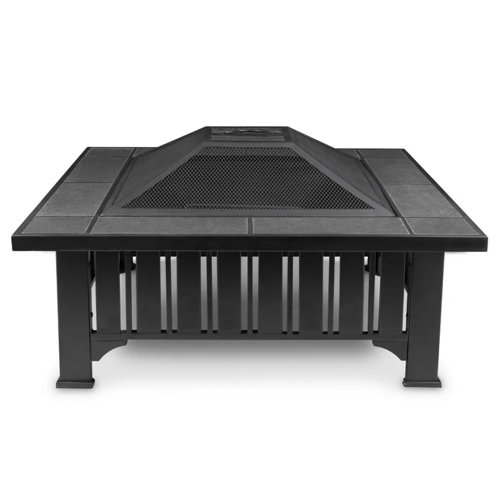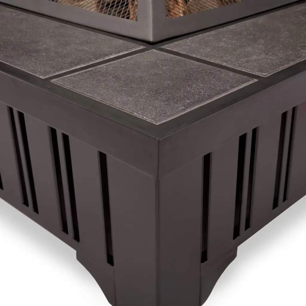 Black powder-coated steelwork and gray tiles give the Lafayette Fire Pit a crafted style with an industrial edge. Our freestanding fire pits provide a comfortable, warm ambience without the hassle of a fixed, in-ground fire pit, and can be conveniently moved to different settings. Includes a durable spark screen, iron log poker and protective storage cover.