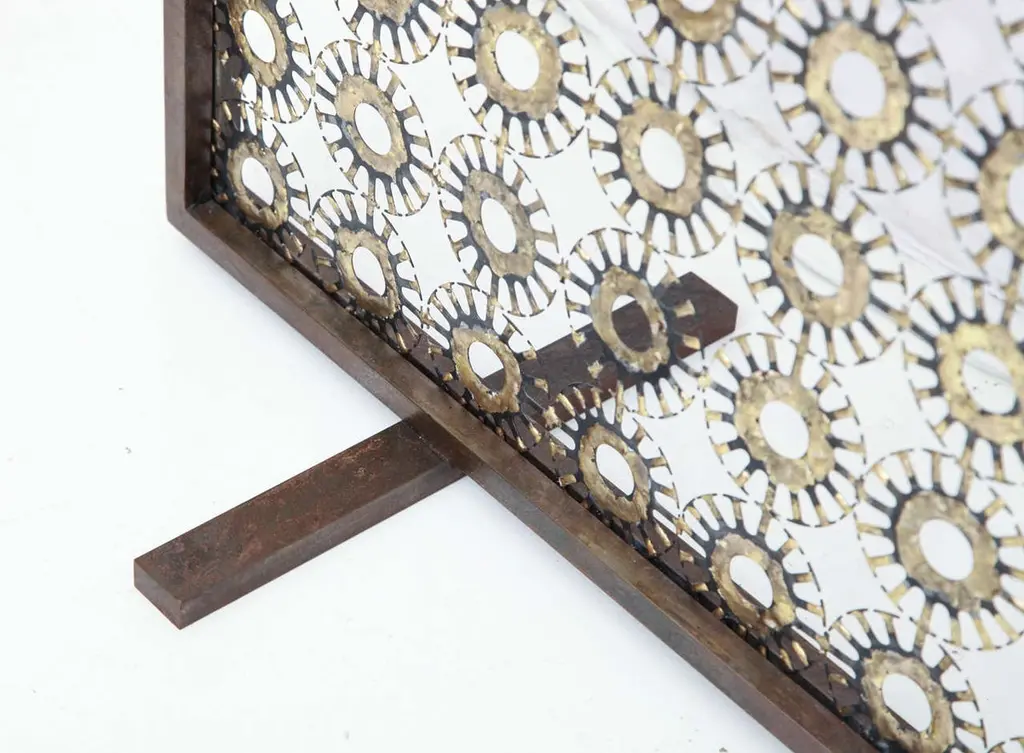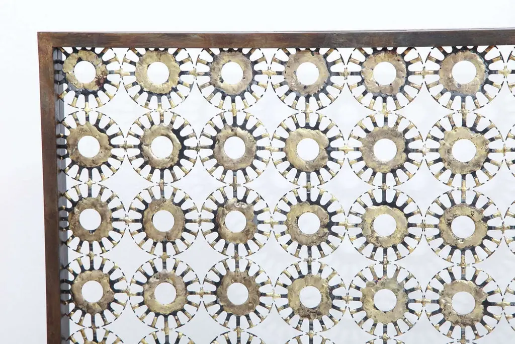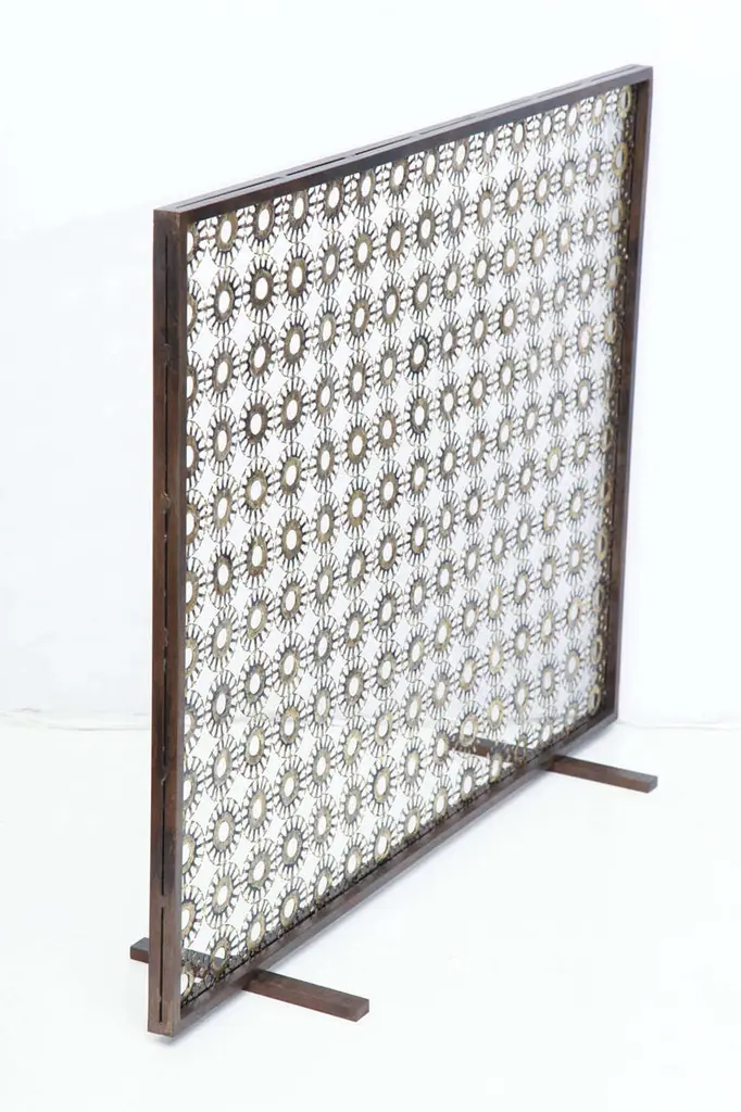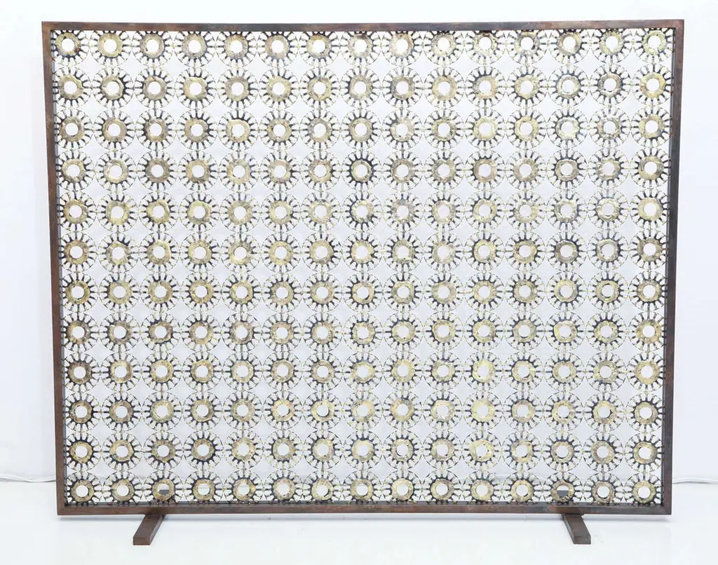 Marie SuriThe laurel fire screen fire screen with 2.5” steel medallions and bronze decoration. Custom inquiries welcome. Mesh backing available for wood-burning fireplaces.Made to order expressly for Liz O'Brien.