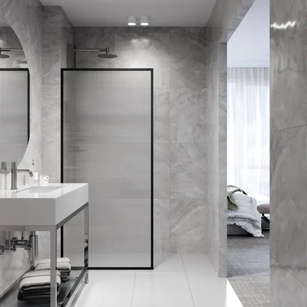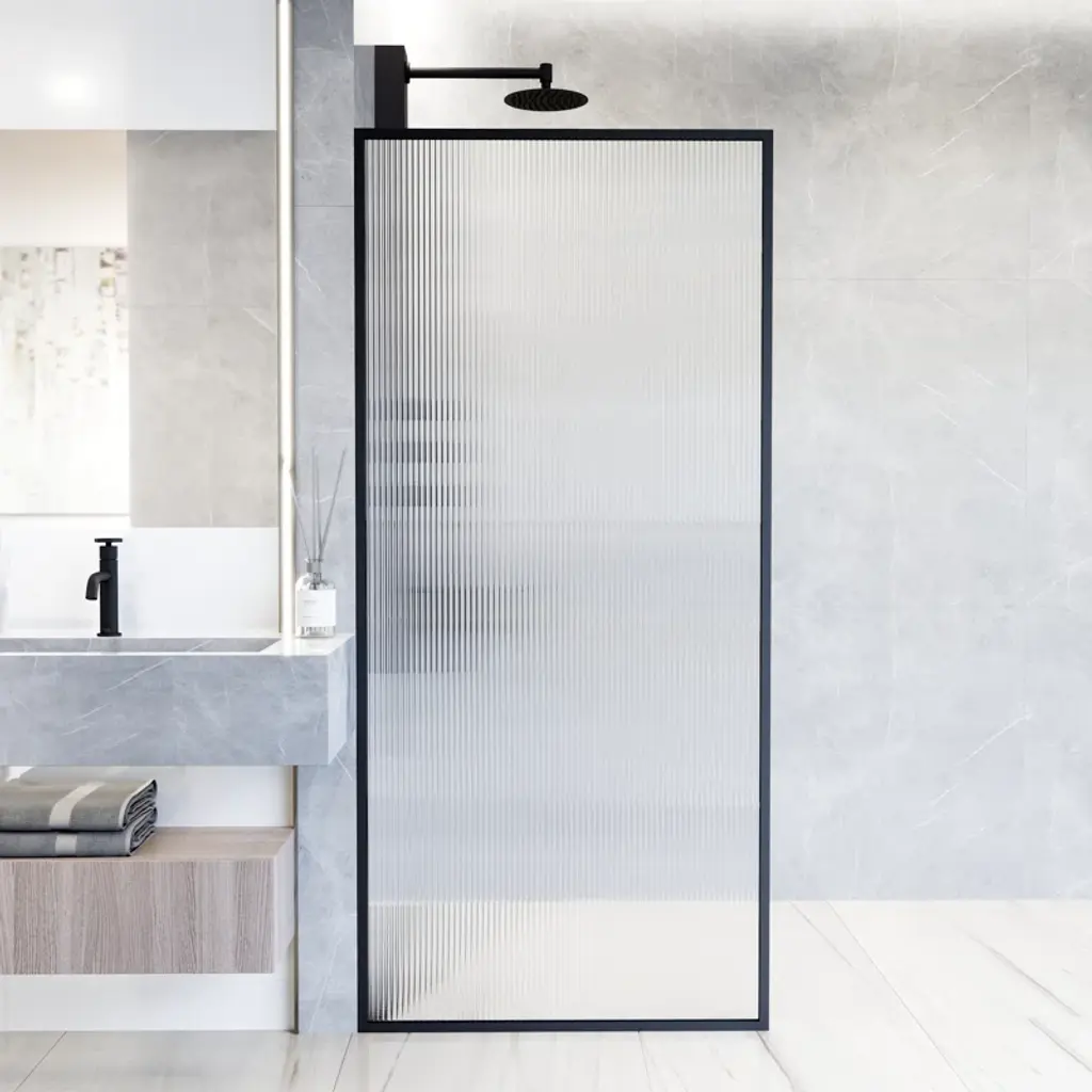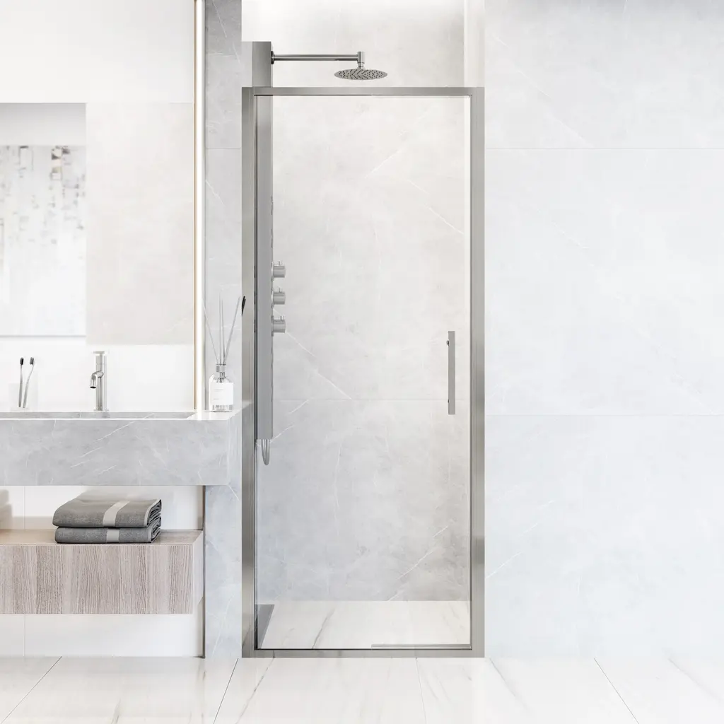 The Meridian fixed frame shower screen. Its clear tempered glass resists scratches and accidental breakage, making the Meridian exceptionally safe. our premium 7-layer hardware resists tarnishing, keeping the Meridian shower screen like-new for years to come. The clear glass shower screen with a frame gives the bathroom an open feel while giving a designated shower area in your bathroom. The full-length transparent vertical and bottom seals keep your shower watertight. The included simple instructions allow for an easy DIY-style installation at home.