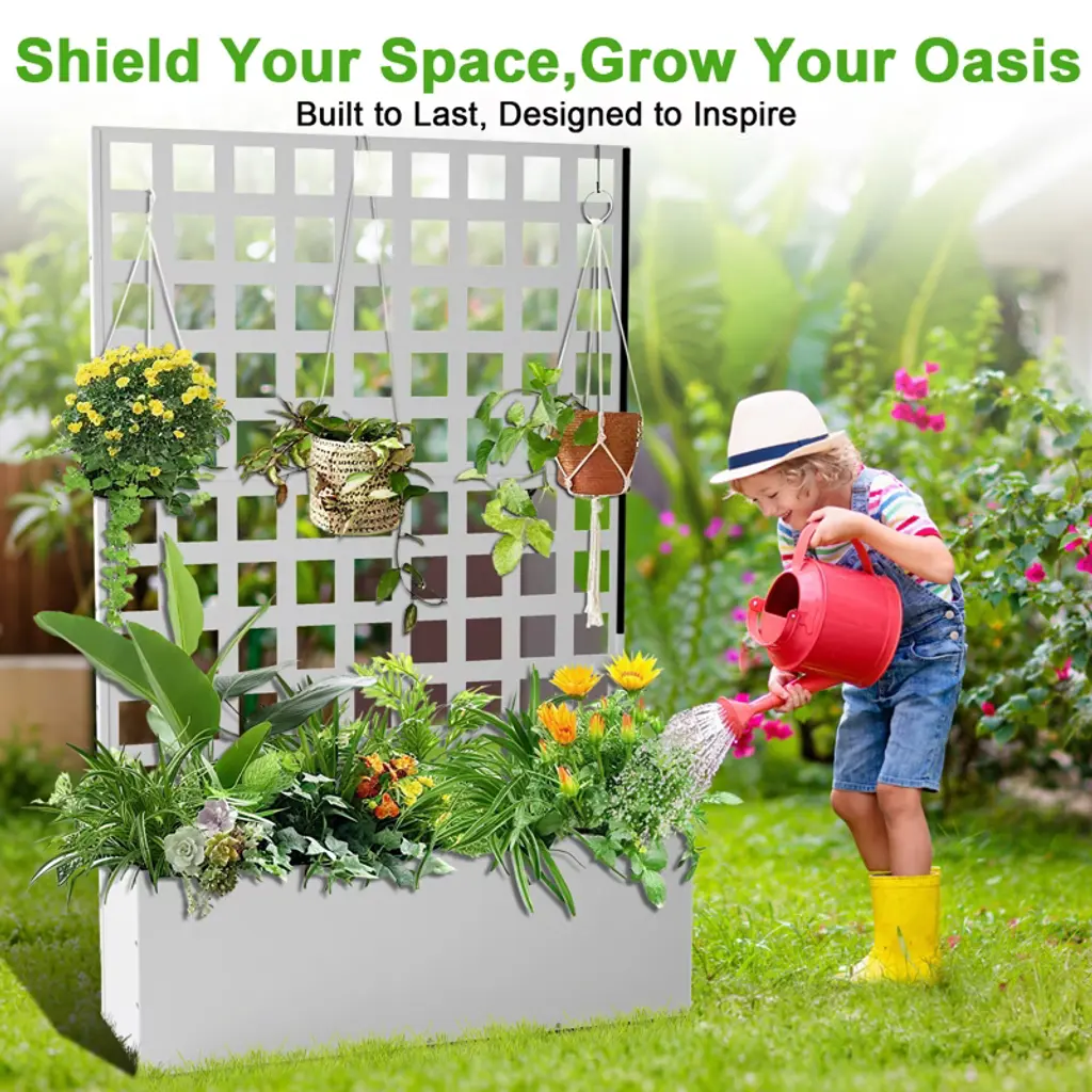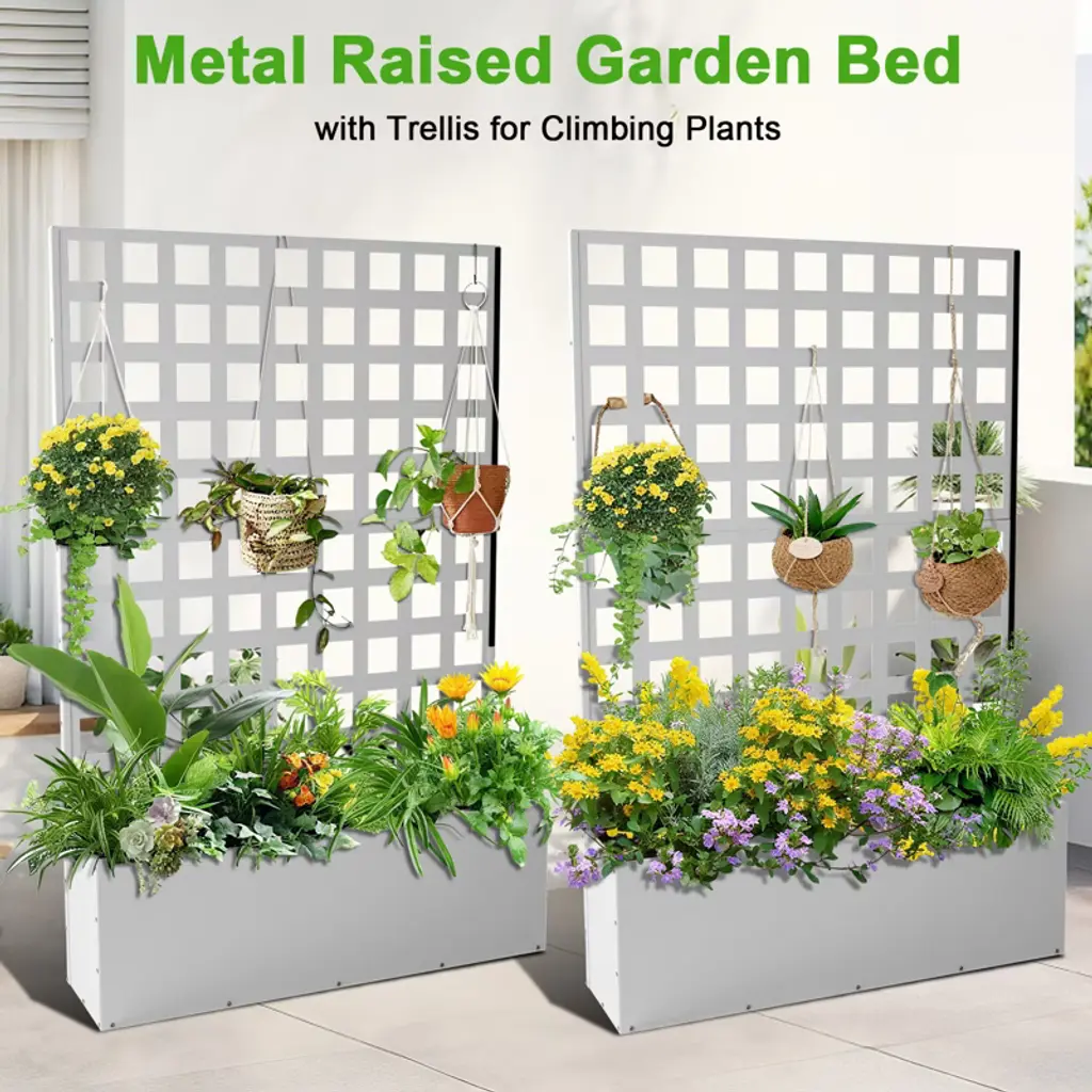 Metal Planter Box With Trellis Privacy Screen Raised Garden Bed With Trellis & Wheels, White Grid Trellis Without Wheels