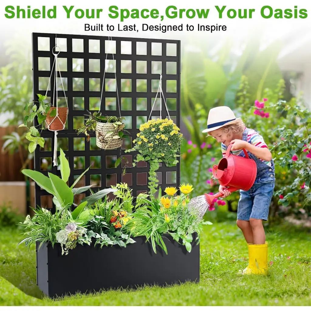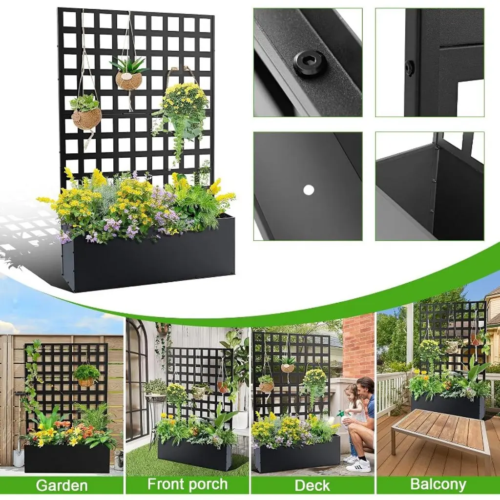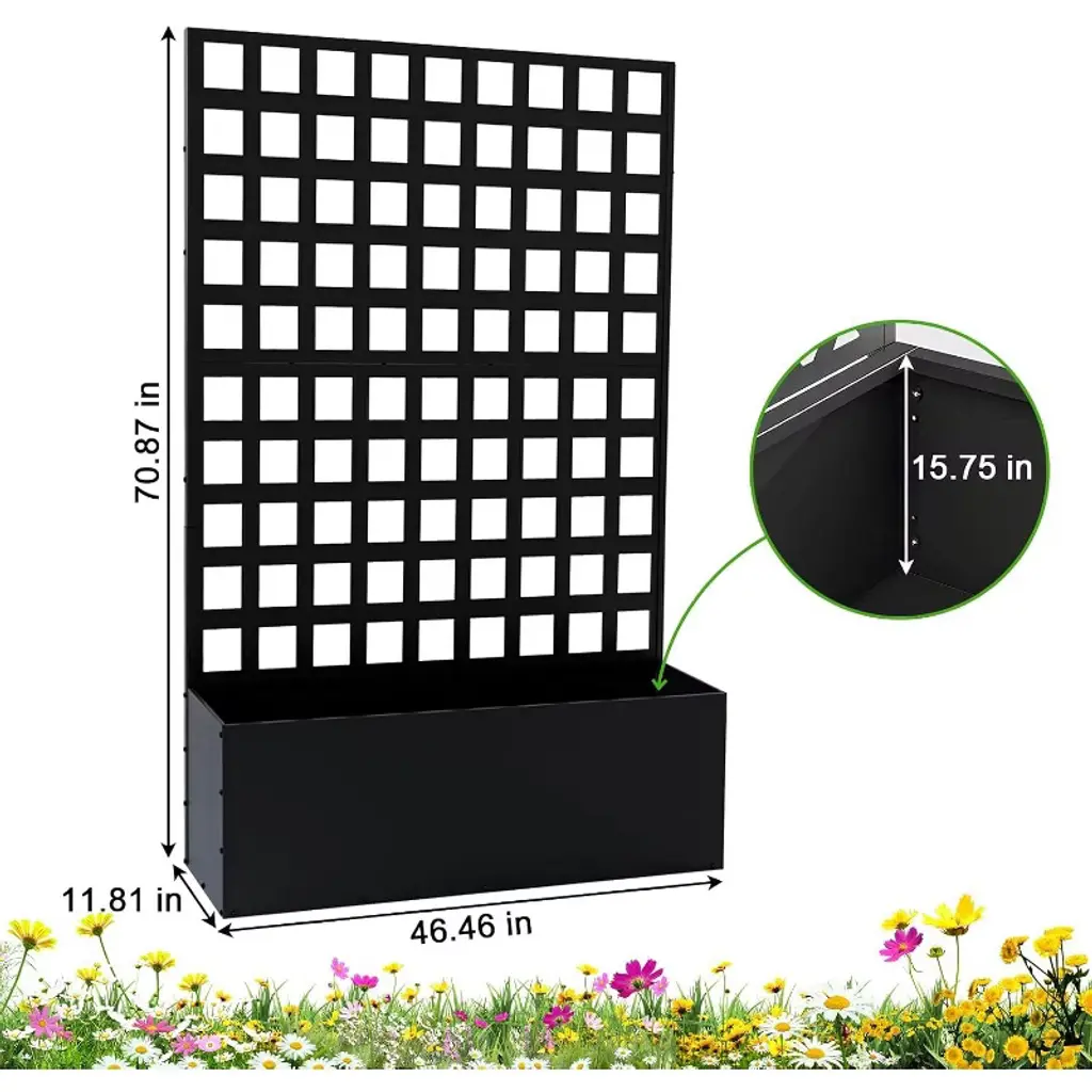 Metal Planter Box With Trellis, Raised Garden Bed, Outdoor Garden Box With Privacy Screen & Drainage Holes For Climbing Plants Flower, Black