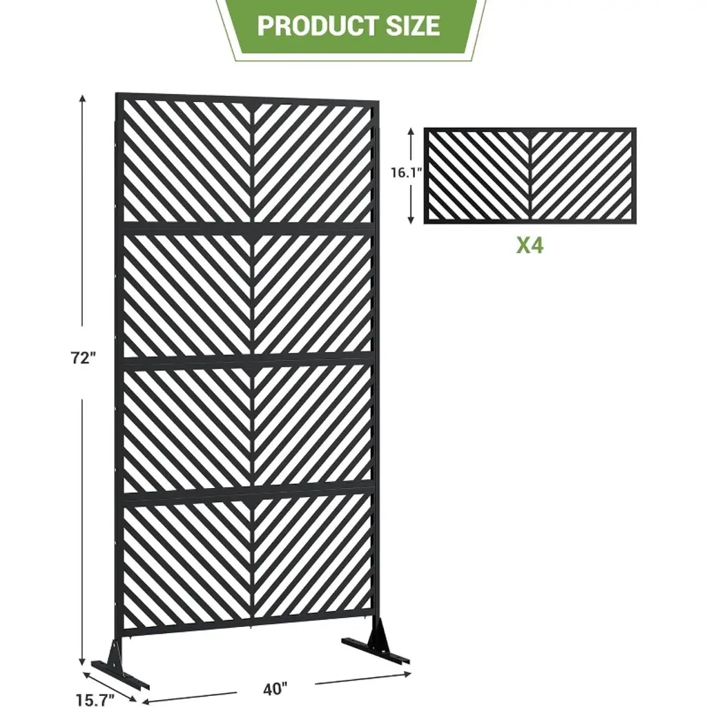 Our privacy screen creates a secluded space for morning coffee or evening gatherings, blocking neighbors' views while enhancing your outdoor living area with style.Product informationMaterial: Metal;Color: Black Parallel;Assembly Required: Yes;Number of Pieces: 1;Item Weight: 23.8 pounds;