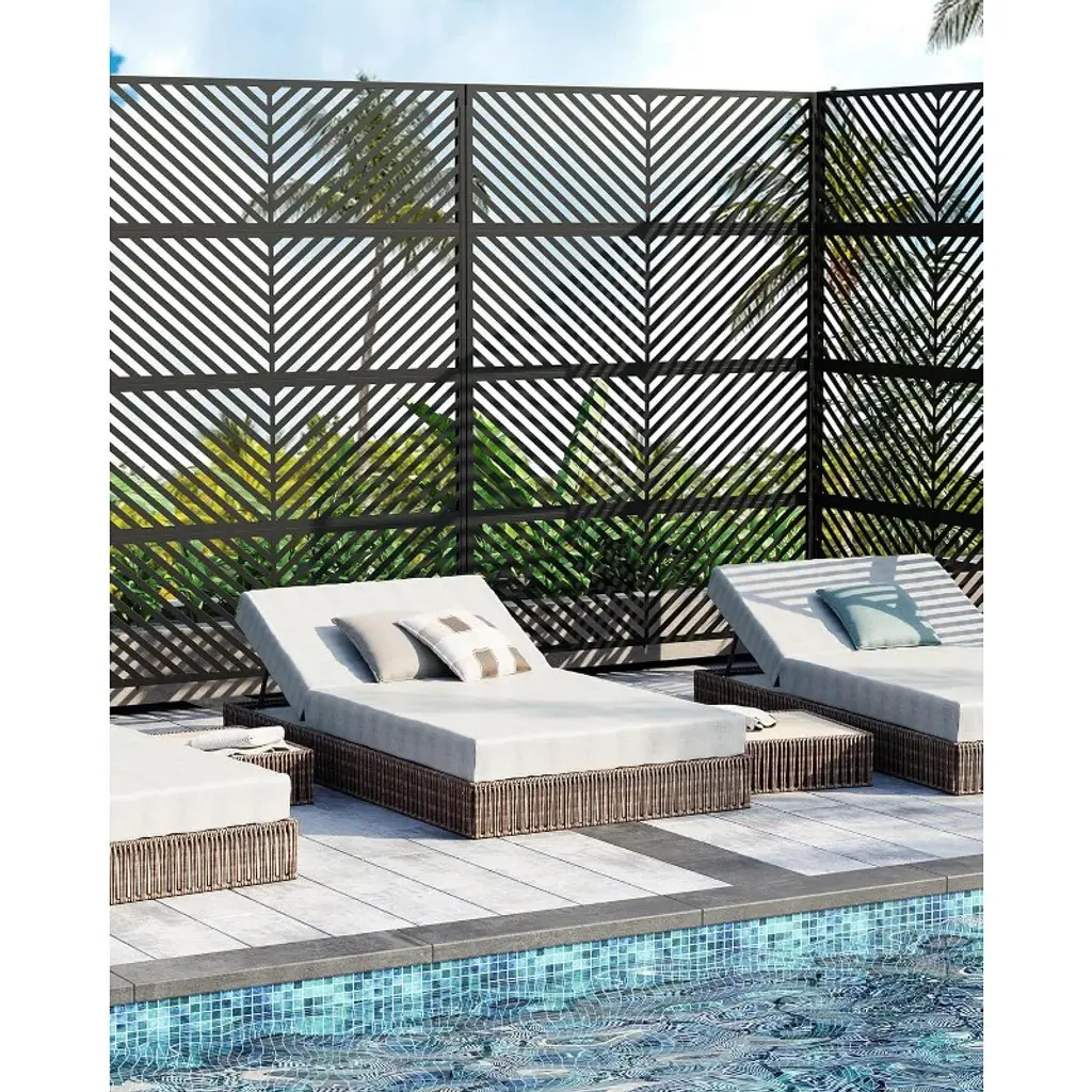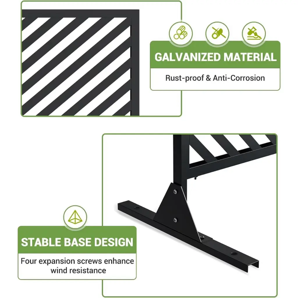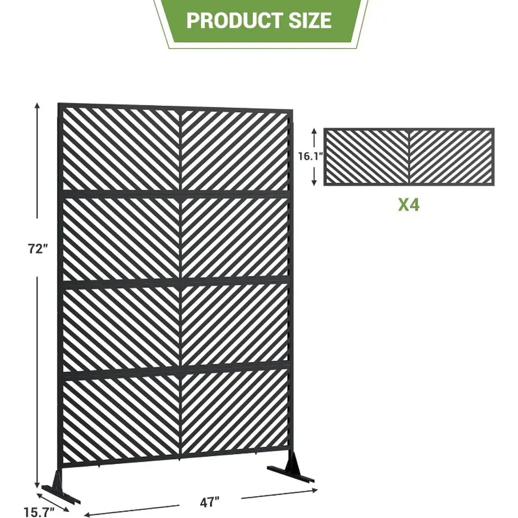 Our privacy screen creates a secluded space for morning coffee or evening gatherings, blocking neighbors' views while enhancing your outdoor living area with style.Product informationMaterial: Metal;Color: Black Parallel;Assembly Required: Yes;Number of Pieces: 1;Item Weight: 23.8 pounds;