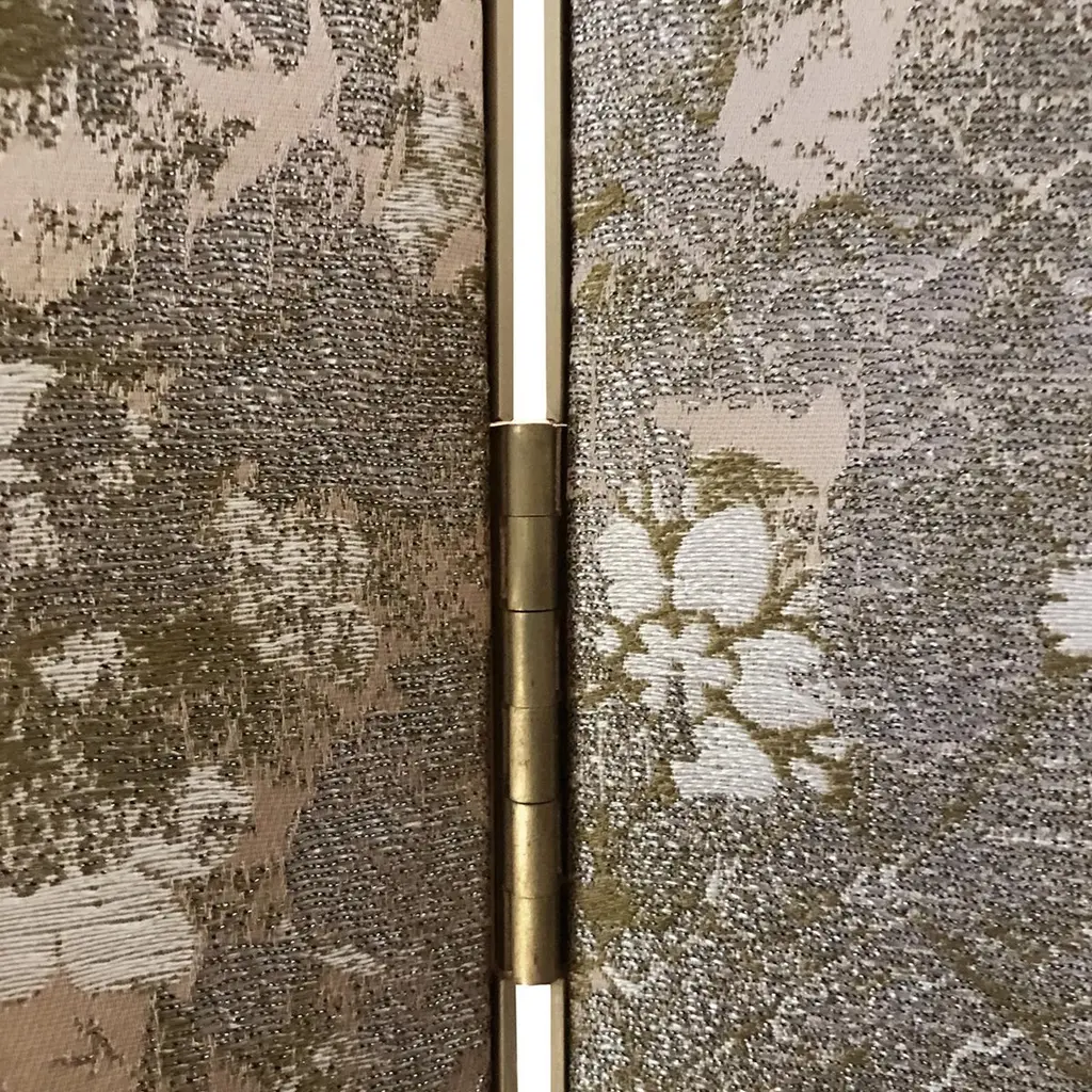 Part of a curated selection of pieces created exclusively for Artemest's Stranger Pinks exhibition at Fuorisalone for Milan Design Week 2018, this sophisticated room divider will create an intimate atmosphere in any interior. It features three hinged panels covered with a precious silk brocade fabric in a blush floral pattern accented by bronze and silver-colored mirror inserts that form an intriguing, geometrical optical illusion. Complete with a frame and base in brass with a brushed, golden finish, this piece will surprise with its warmth and undeniable elegance.