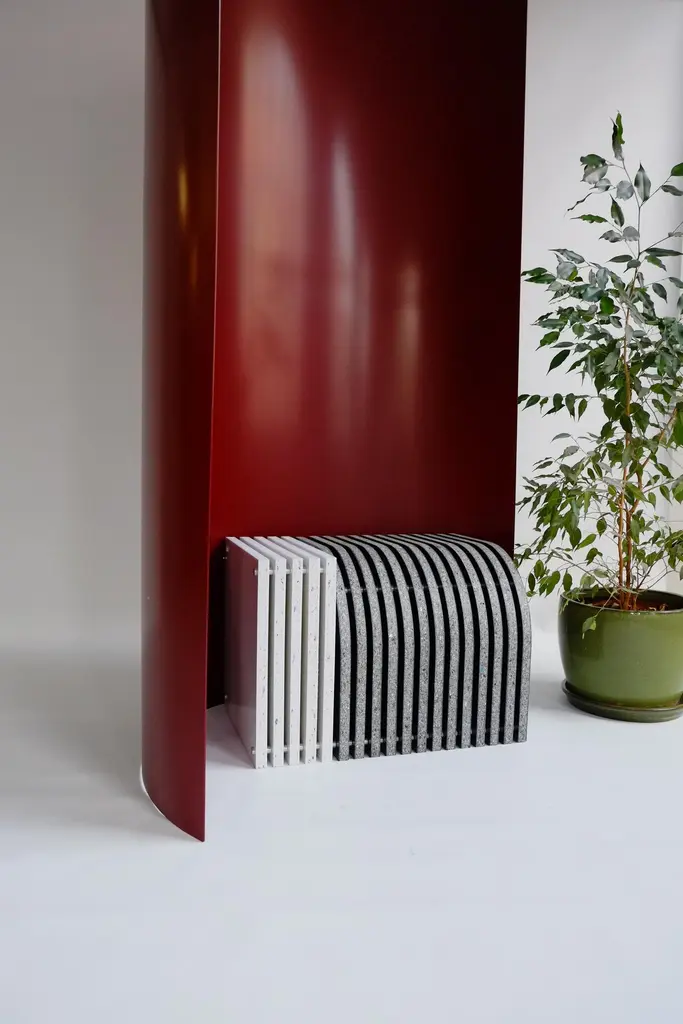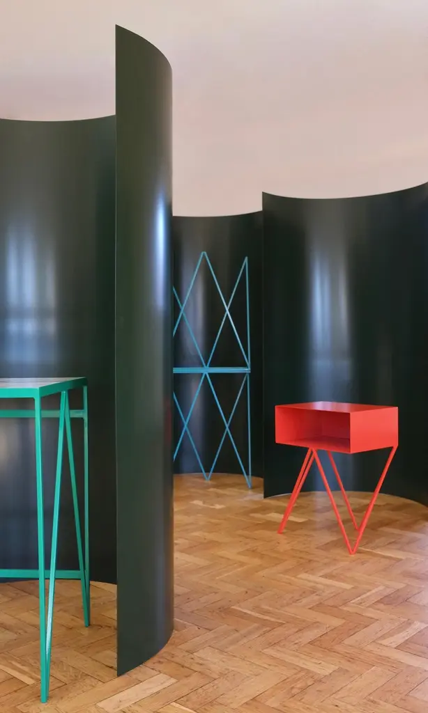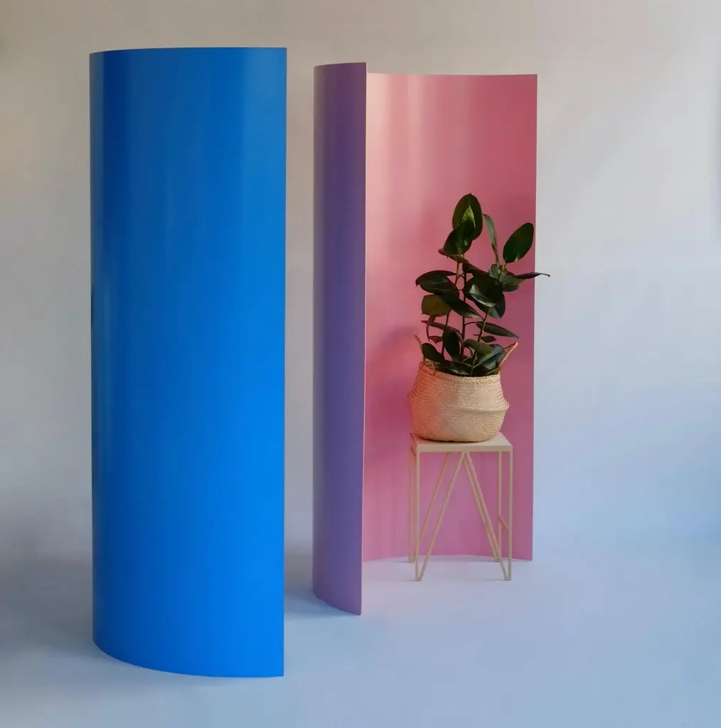 The Gray Screen is a freestanding room divider named after the iconic modernist architect-designer Eileen Gray, a lover of screens. The large powder-coated aluminium curves introduce a mass of vibrant colour into an interior. The screen can be used to divide an open living space or to provide privacy to an area. Ideal as a dressing screen in the bedroom or a dressing room, adding a sense of privacy. Manufactured in fifteen colours. The Gray Screen is suitable for both commercial and residential settings, indoors and outdoors.Colour samples available to order from our storefront - LU2894331610202 Measurements 97 cm wide, 49 cm deep, 175 cm high.The sustainable Gray Screen is made to order in 100% aluminium, which can be recycled almost endlessly, adding to the circular economy.