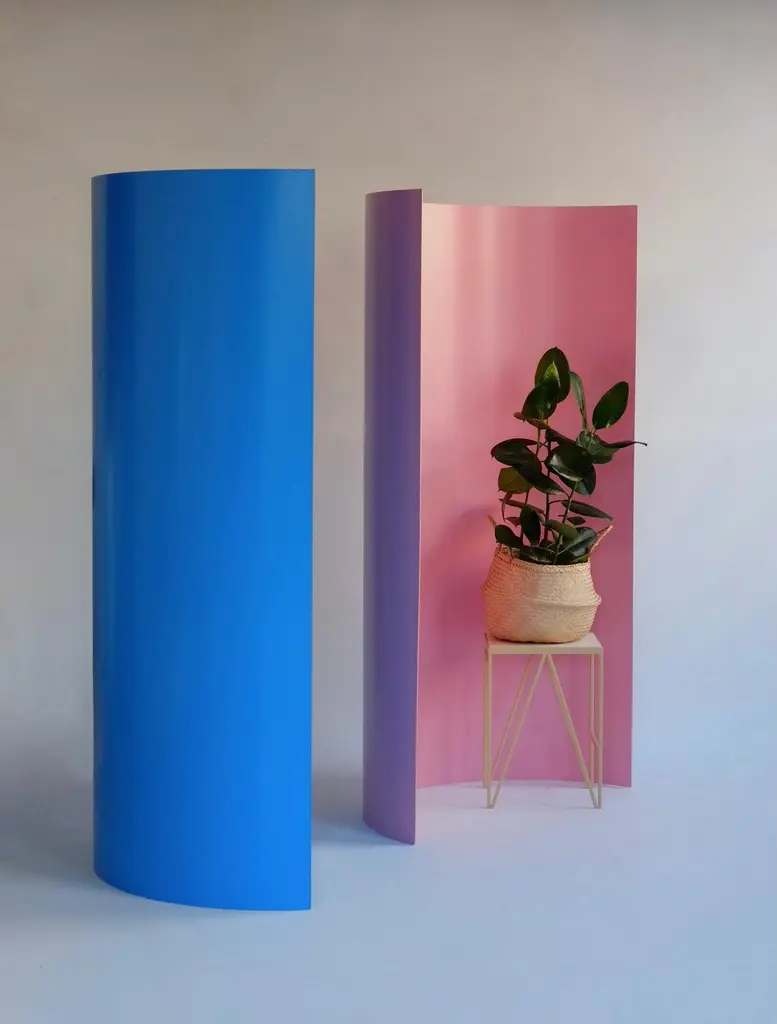 The Gray Screen is a freestanding room divider, named after the iconic modernist architect-designer Eileen Gray, a lover of screens. The large powder-coated aluminium curves introduce a mass of vibrant colour into an interior. The screen can be used to divide an open living space or to provide privacy to an area. Ideal as a dressing screen in the bedroom or a dressing room, adding a sense of privacy. Manufactured in fifteen colours. The Gray Screen is suitable for both commercial and residential settings indoors and outdoors.Colour samples available to order from our storefront - LU2894331610202 Measurements 97 cm wide, 49 cm deep, 175 cm highThe sustainable Gray Screen is made to order in 100% aluminium, which can be recycled almost endlessly, adding to the circular economy.