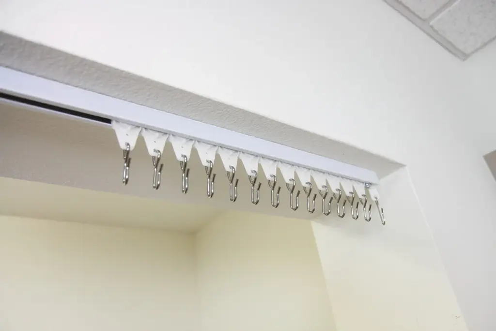 Set includes: Track, End Stops and Carriers with hooks. Track Construction: 3ft-8ft are composed of one curtain track; 10ft-16ft are composed of two curtain tracks; 18ft-24ft are composed of three curtain tracks; 26ft-32ft are composed of four curtain tracks, 34ft and 36ft are composed of five curtain tracks. Steel Track size: 1.75 inch tall and 1.125 inch wide ceiling track. Ball bearing carrier: 3ft-6ft (10 pcs), 8ft-12ft (20 pcs), 14ft-18ft (30 pcs), 20ft-24ft (40 pcs), 26ft-30ft (50 pcs) and 32ft-36ft (60 pcs).