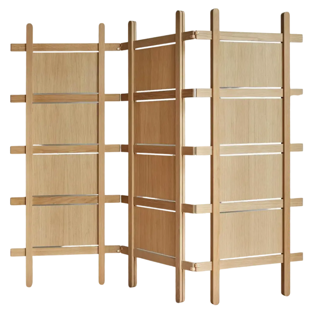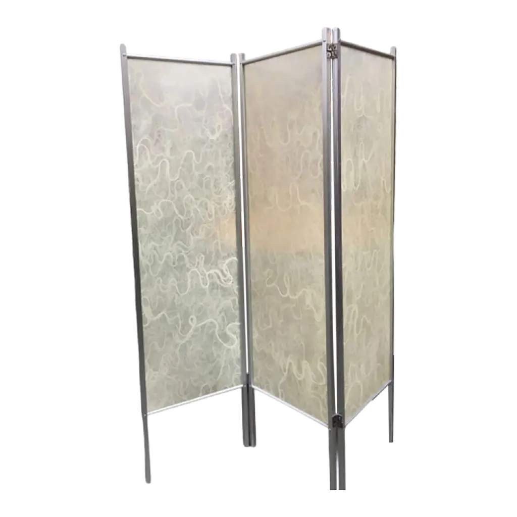 A sophisticated piece of functional decor that will create a private area in a large room, this screen is composed of three panels that can open completely to 360° covered in fine Moteado leather. The structure is made of stained oak and is enriched with hinges made of woven natural leather. The three screens are available with different covers (stained cork, fabric, leather, or mirrors), please inquire with the Concierge for details and pricing in the different options.