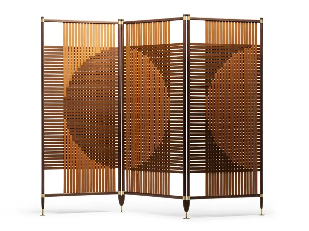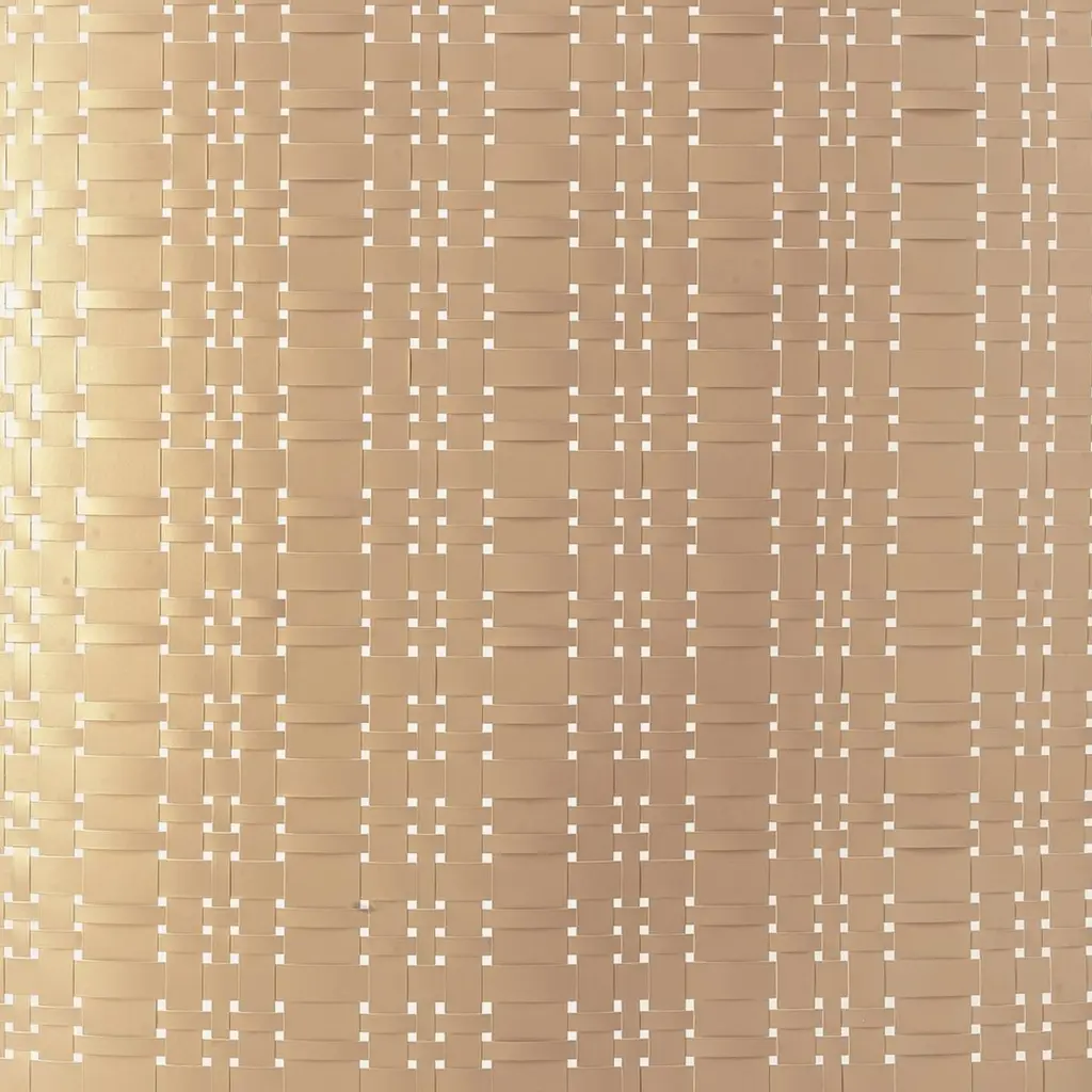 A contemporary take on antique tapestries, the Obsidium Aurum is characterized by a luxurious, golden finish, aptly reflected in Latin name which translates to "Golden Block". The metallic-gold double-sided panel is made of Splot, a handwoven aluminum mesh created by Inthegarden Design Studio using material recovered from industrial waste. Suspended in a slender, cylindrical iron frame finished in the same rich and warm tones as the mesh canvas, this sophisticated screen can be used as a room divider or as a purely decorative focal point in a contemporary decor.