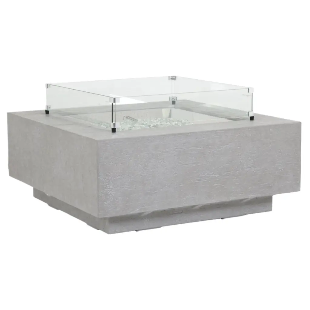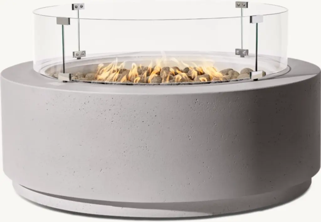This glass screen shields the burn components of the Orizaba Fire Table from the wind, while also acting as a safety barrier. Crafted of durable, tempered-glass panels secured by metal brackets, it complements the fire table's smooth, clean lines.