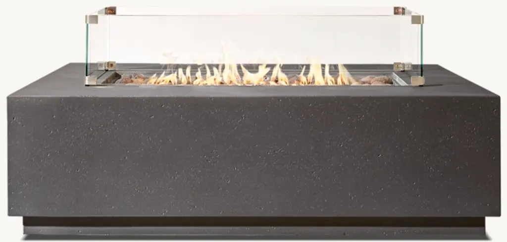 This glass screen shields the burn components of the Orizaba Fire Table from the wind, while also acting as a safety barrier. Crafted of durable, tempered-glass panels secured by metal brackets, it complements the fire table's smooth, clean lines.