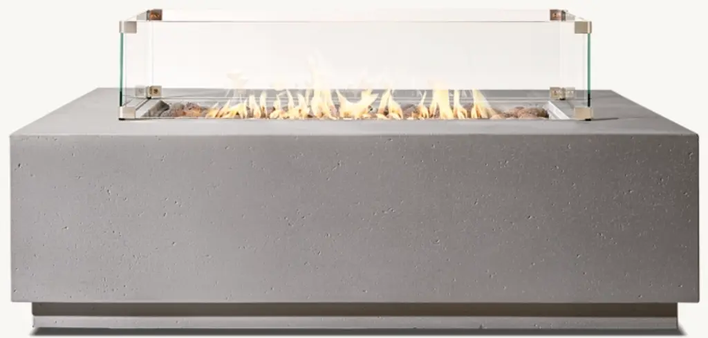 This glass screen shields the burn components of the Orizaba Fire Table from the wind, while also acting as a safety barrier. Crafted of durable, tempered-glass panels secured by metal brackets, it complements the fire table's smooth, clean lines.