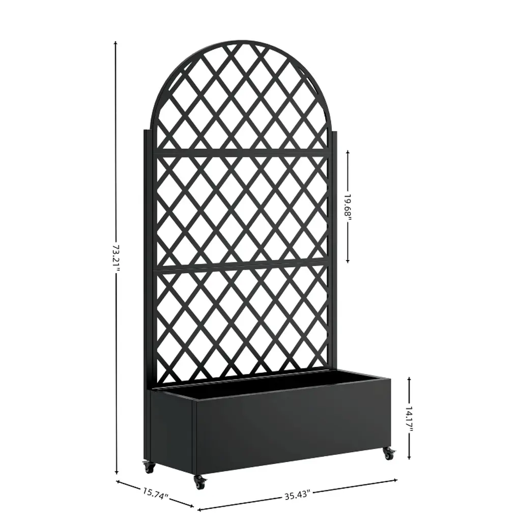 Grow climbing plants easily with this round metal planter box featuring an attached trellis, 4 wheels for mobility, and privacy screen. Perfect for vegetables, vines & flowers. Durable steel construction with rust-resistant finish. Elevate your gardening game!