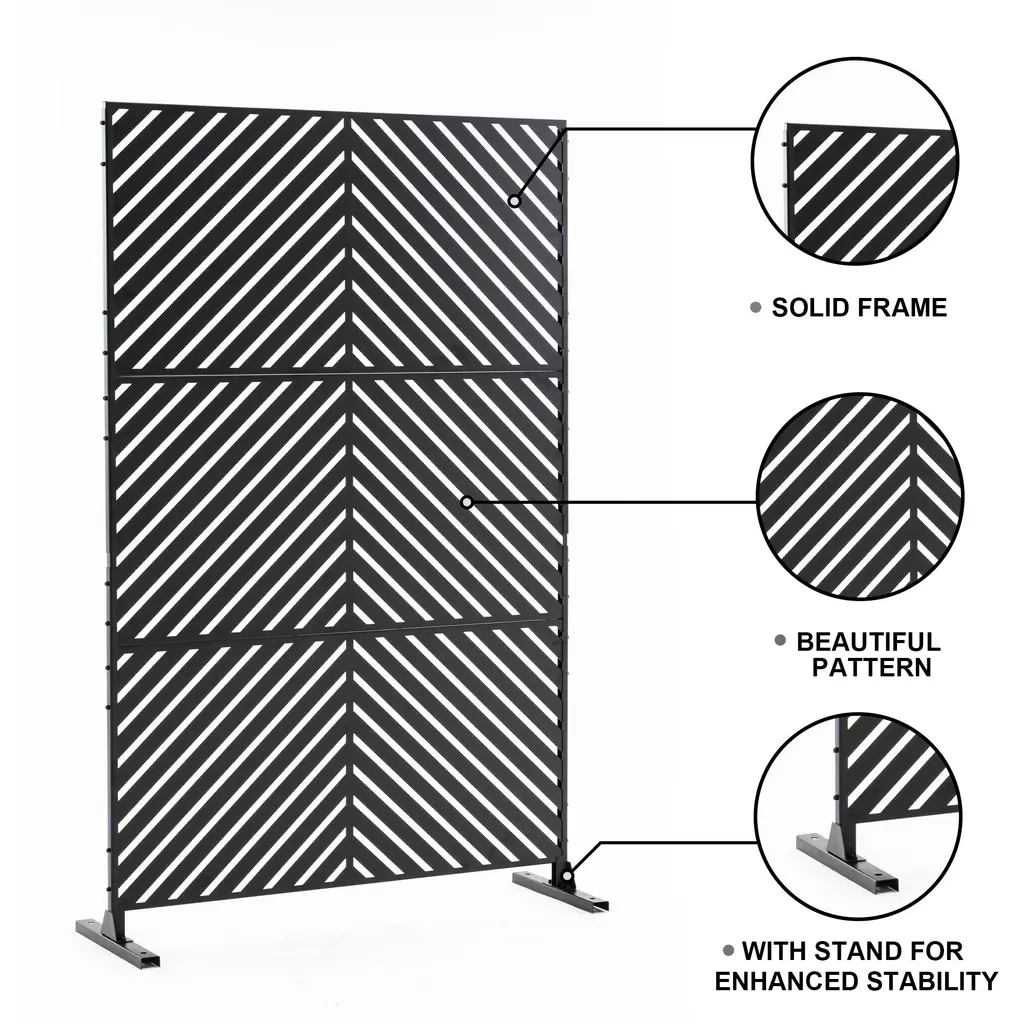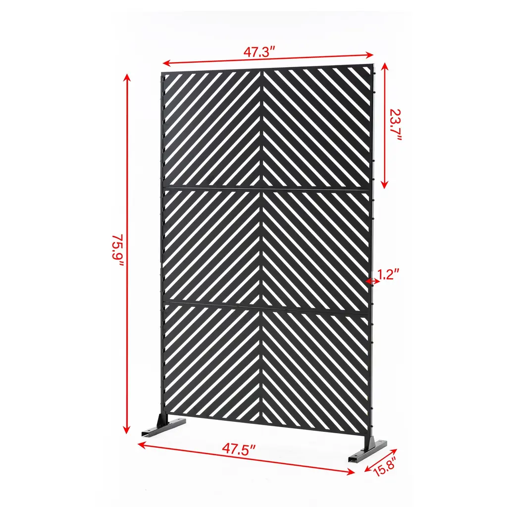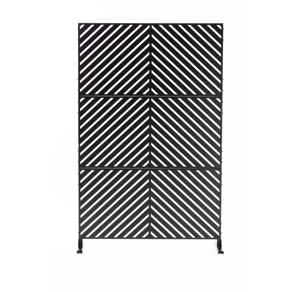 Outdoor 75'' X 47'' Metal Privacy Screen Fence Panel Line Pattern - 006-Oblique Line - Black