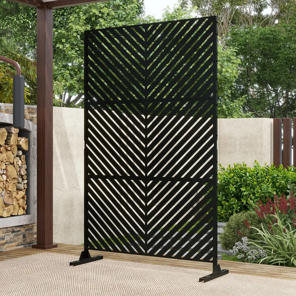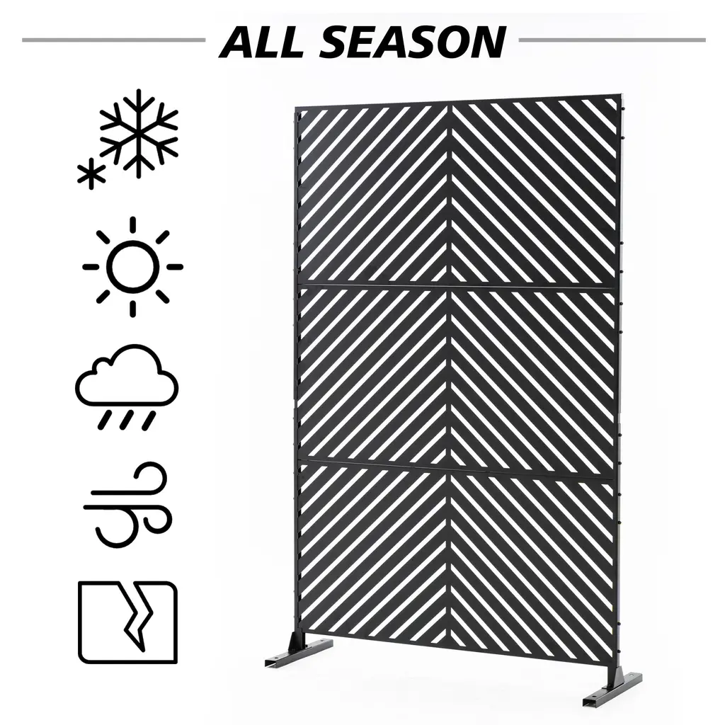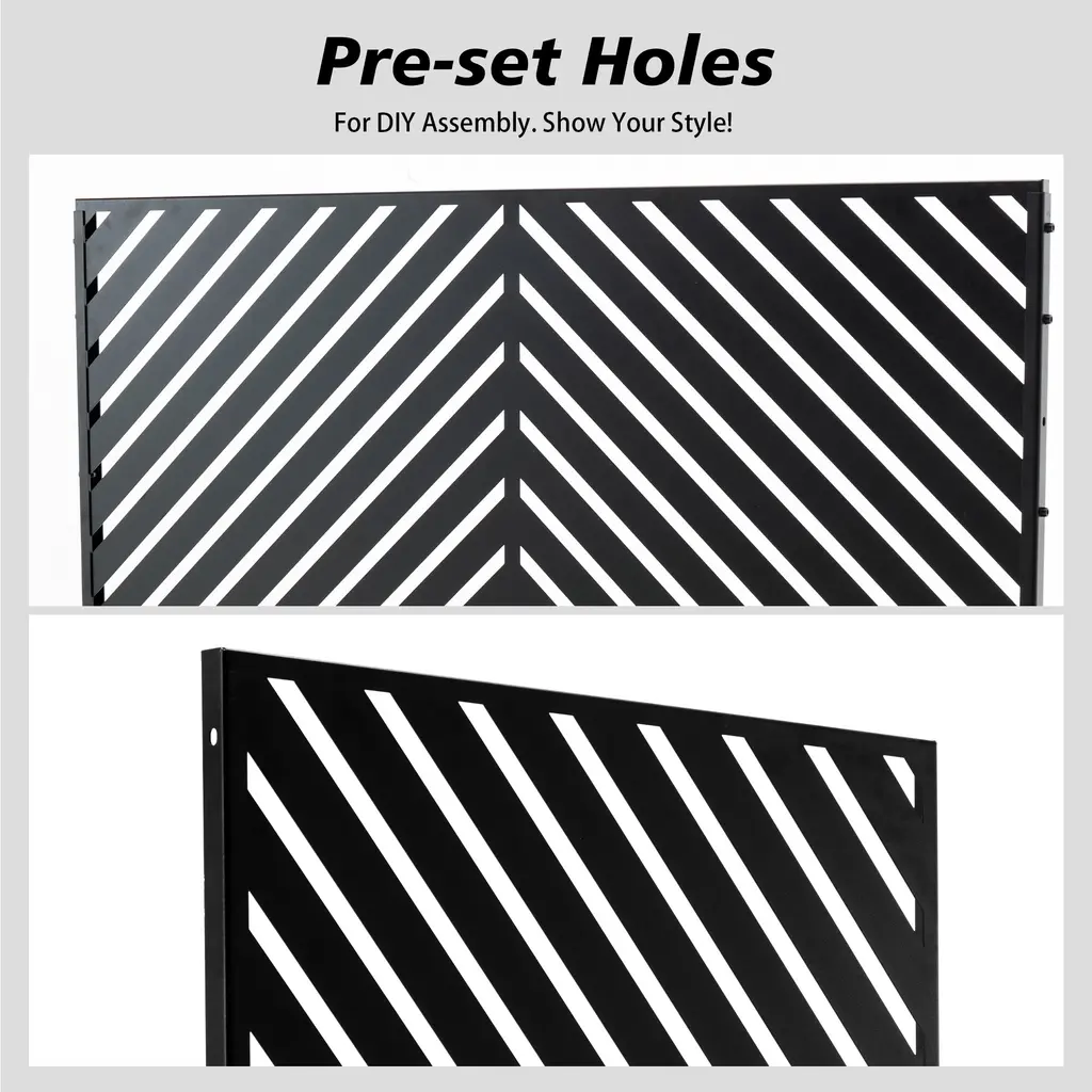 Outdoor 75'' X 47'' Metal Privacy Screen Fence Panel Line Pattern - 006-Oblique Line - Black