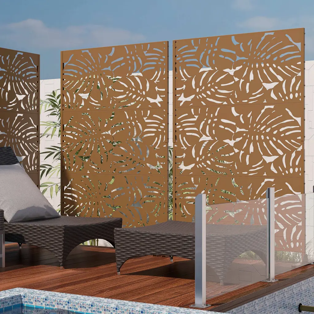 Imagine the possibilities with our galvanized steel privacy screen - a stunning addition to your outdoor space! Precision-cut and treated with UV inhibitors, it's not just a barrier - it's a visual masterpiece. Watch as sunlight dances through its intricate patterns, transforming your space into a sanctuary of light and shadow. Versatile and easy to install, it's the perfect solution for dividing spaces or adding a touch of charm to your outdoor oasis. Say goodbye to ordinary privacy screens and elevate your space with our inspired galvanized steel design. Features: Red Brown Screen Feature:Dimensions: