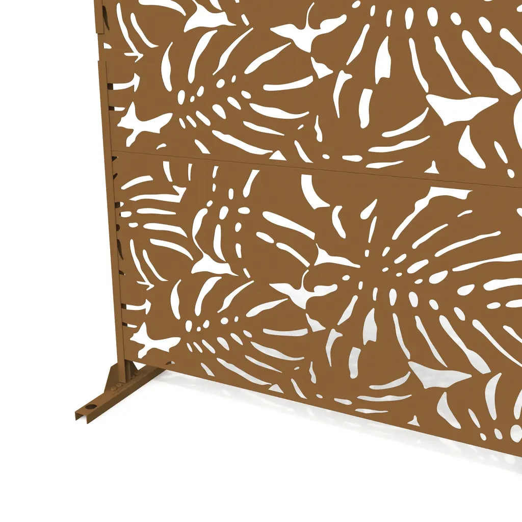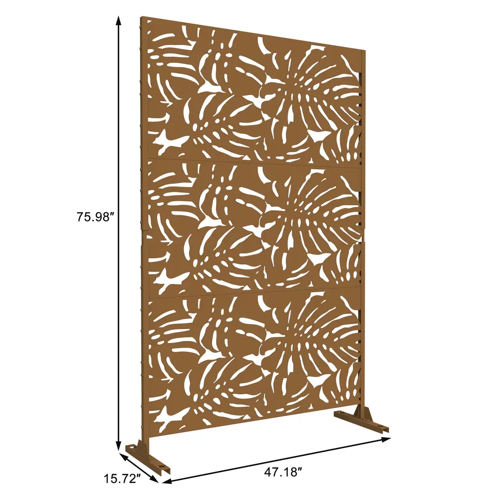 Outdoor Free Standing Metal Privacy Screen - Leaf - Brown-Leaf