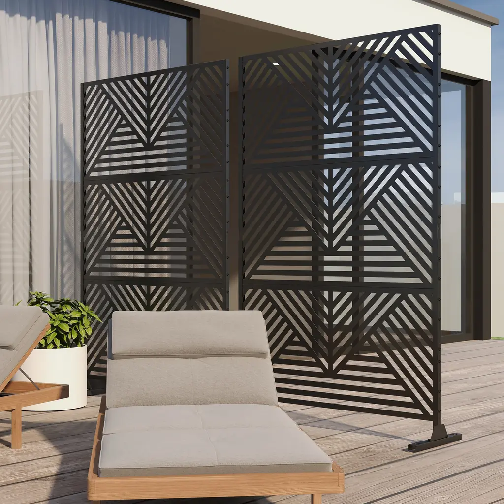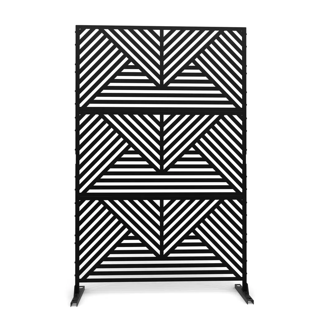 Outdoor Free Standing Metal Privacy Screen - Parallel - Black-Parallel