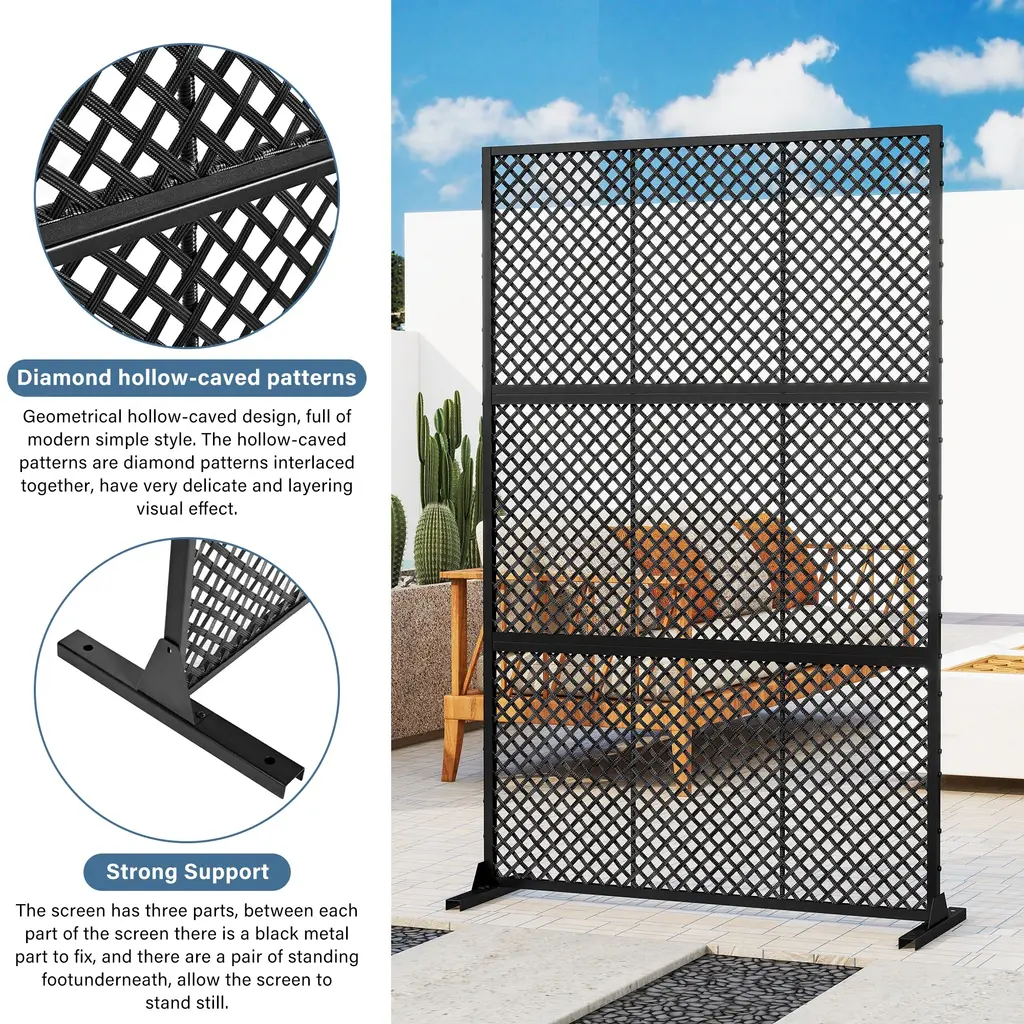 Outdoor Privacy Screen Free Standing Metal Privacy Screen Panel - 72"h X 47"w - Black