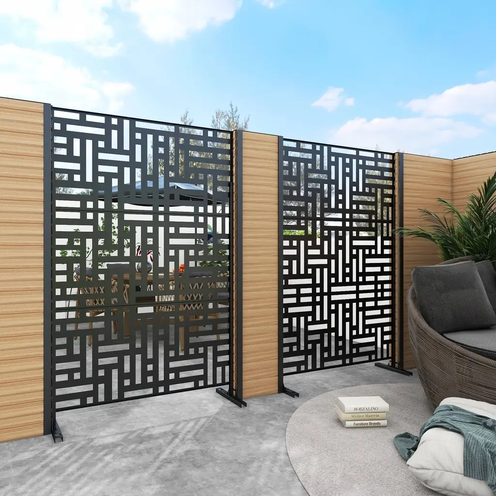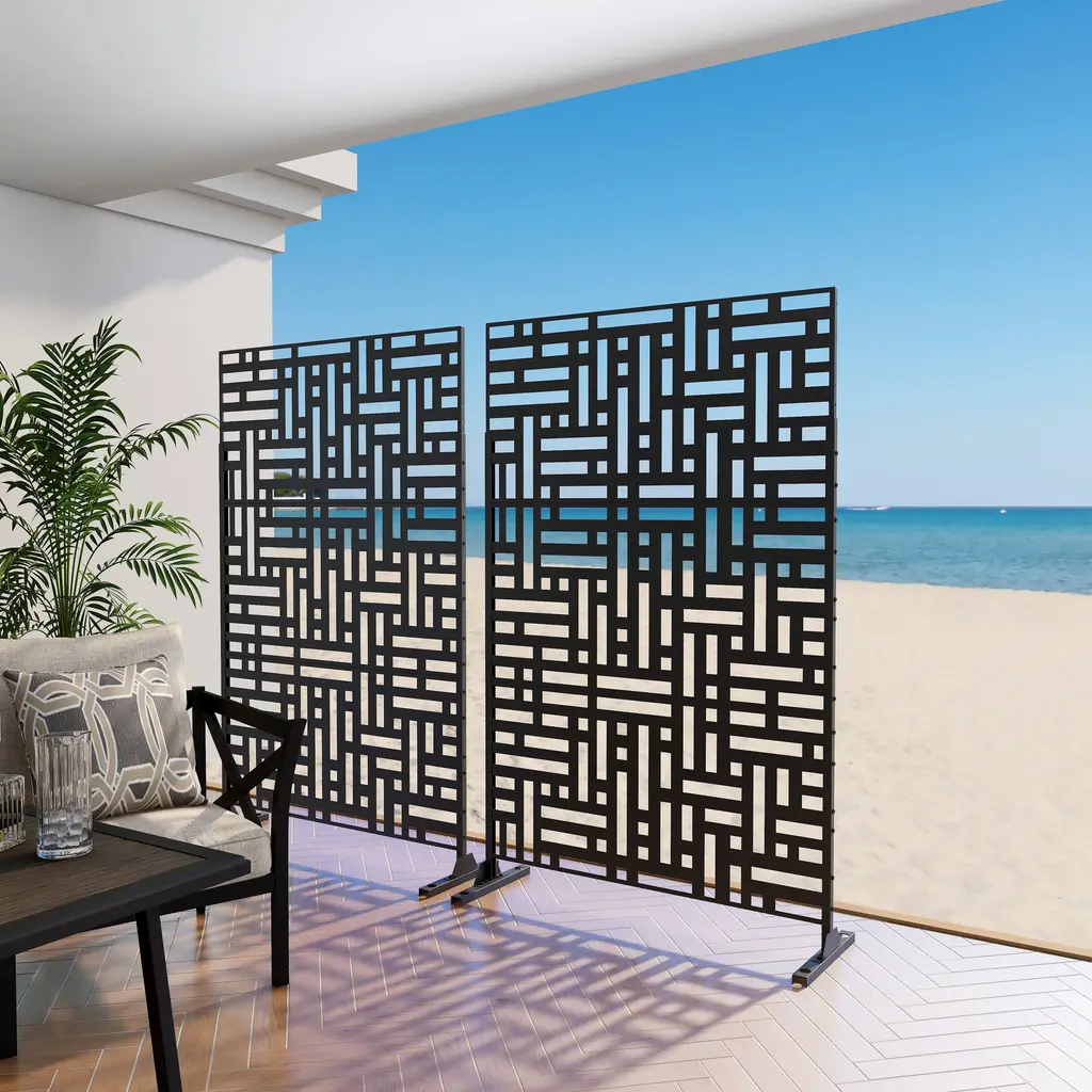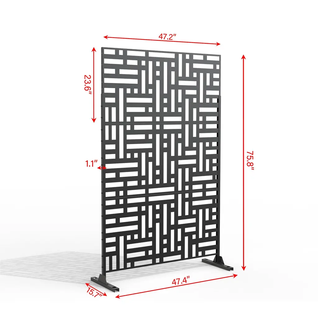 This screen is a perfect combination of art and science. It has 8 patterns which are created by our experienced design team, can be used in either residential or commercial spaces. Each of privacy screen patterns is unique and designed to aesthetically enhance any space it occupies. The panels are made of 2mm galvanized steel and coated with robust and scratch-resistant powder so that the screen is not afraid of sun and rain. This privacy screens are the perfect way to create secluded areas within your outdoor space, giving you privacy while enjoying the great outdoors.Features: