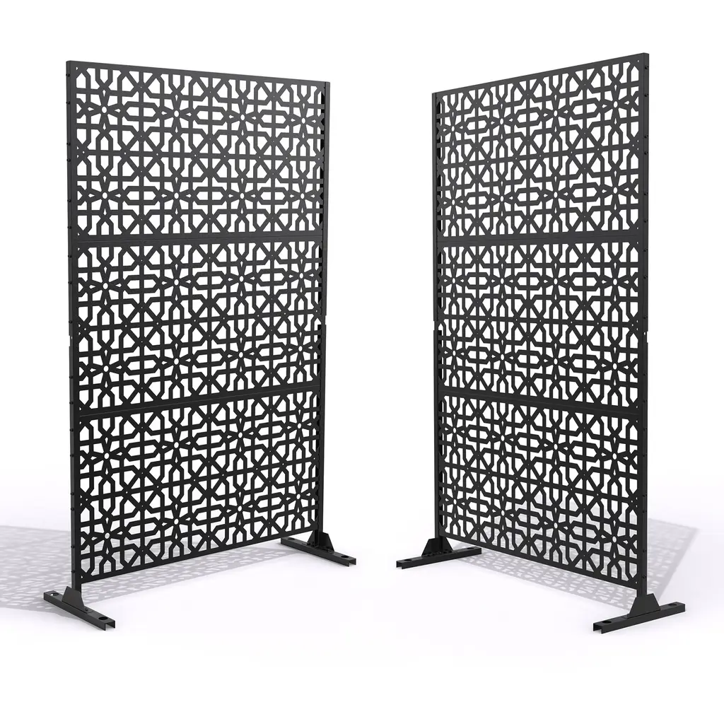 This screen is a perfect combination of art and science. It has 8 patterns which are created by our experienced design team, can be used in either residential or commercial spaces. Each of privacy screen patterns is unique and designed to aesthetically enhance any space it occupies. The panels are made of 2mm galvanized steel and coated with robust and scratch-resistant powder so that the screen is not afraid of sun and rain. This privacy screens are the perfect way to create secluded areas within your outdoor space, giving you privacy while enjoying the great outdoors.Features: