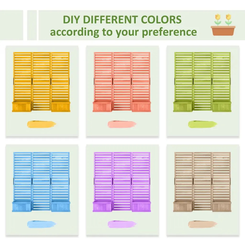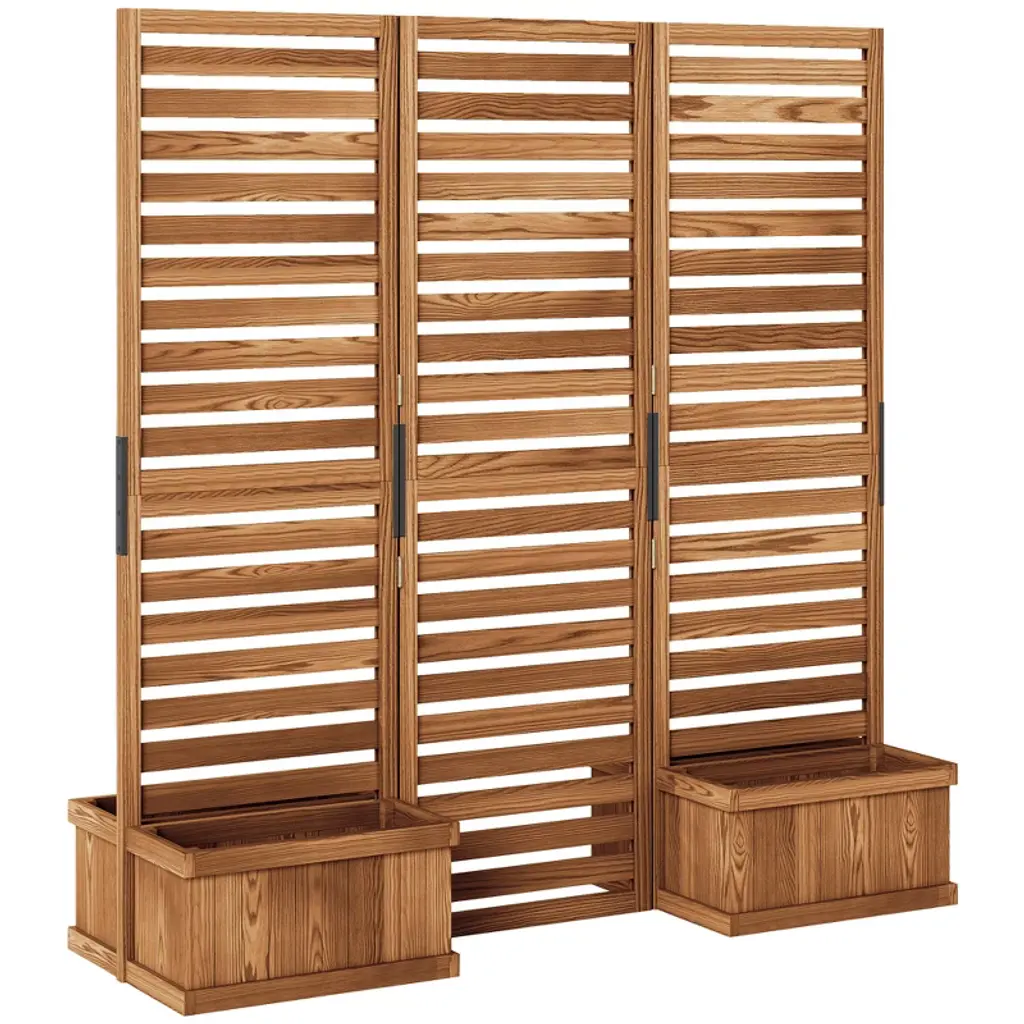 Outsunny Privacy Screen With 4 Wooden Planter Box, Flower Pot Vegetable Raised Garden Bed W/ 3 Panels And Drainage Holes For Patio, Balcony