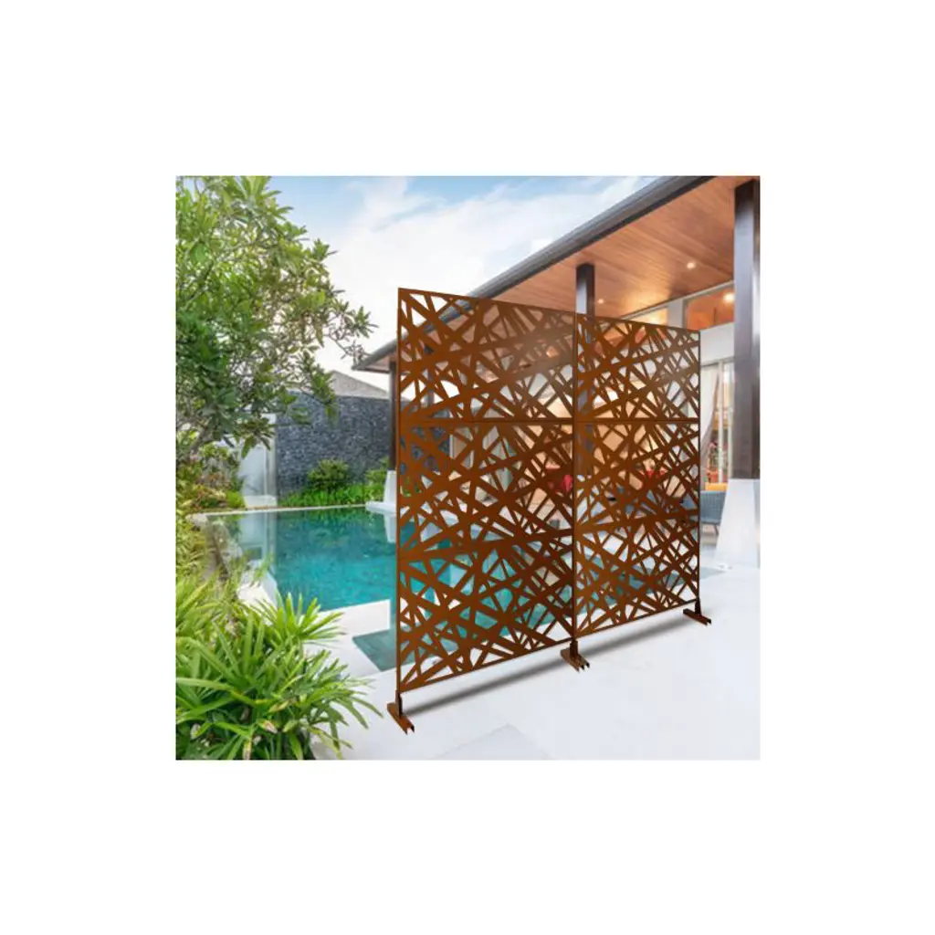 Paged Line-shaped Patio Privacy Screen, Fence Privacy Screen, Outdoor Privacy Screen Freestanding For Lawn Garden Deck Balcony Patio, Brown