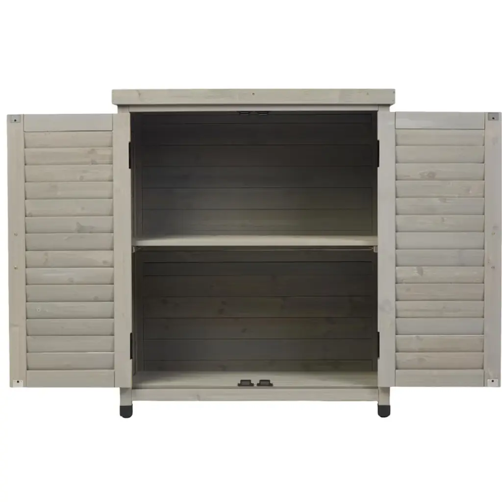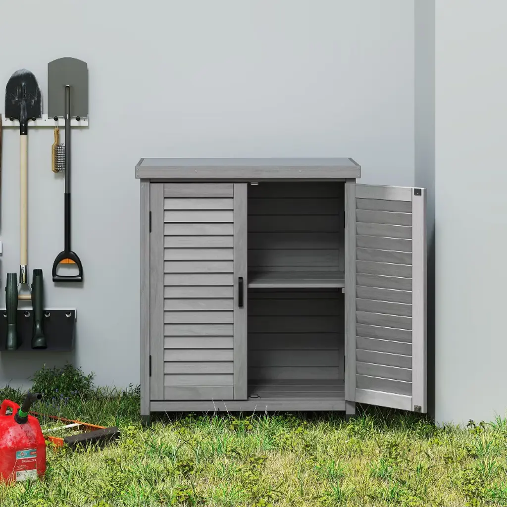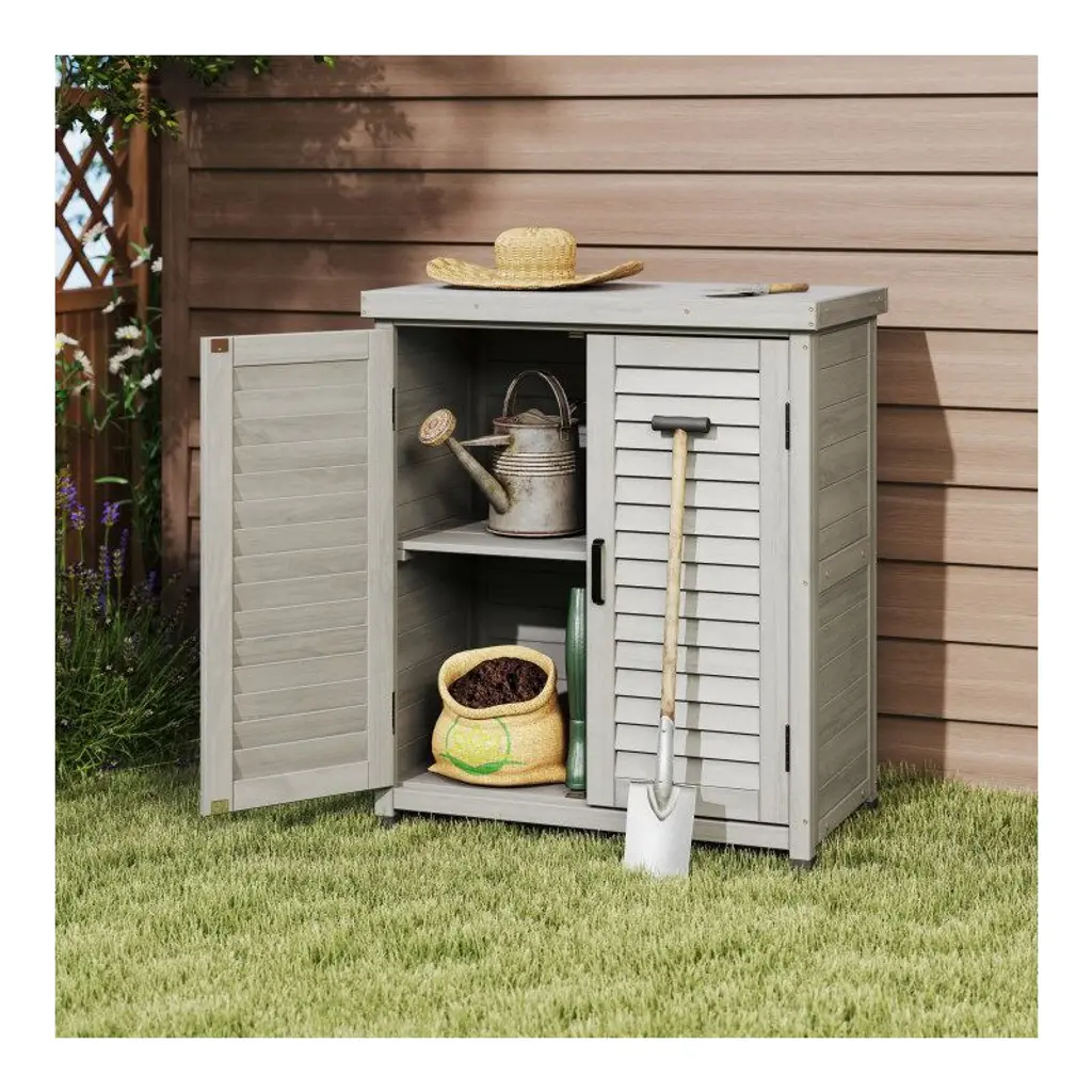 Paged Potting Bench With Storage Cabinet And Metal Table Top,outdoor Storage Cabinet With Screen Door Design,potting Table For Garden,gray