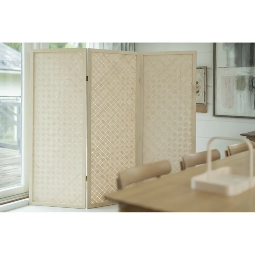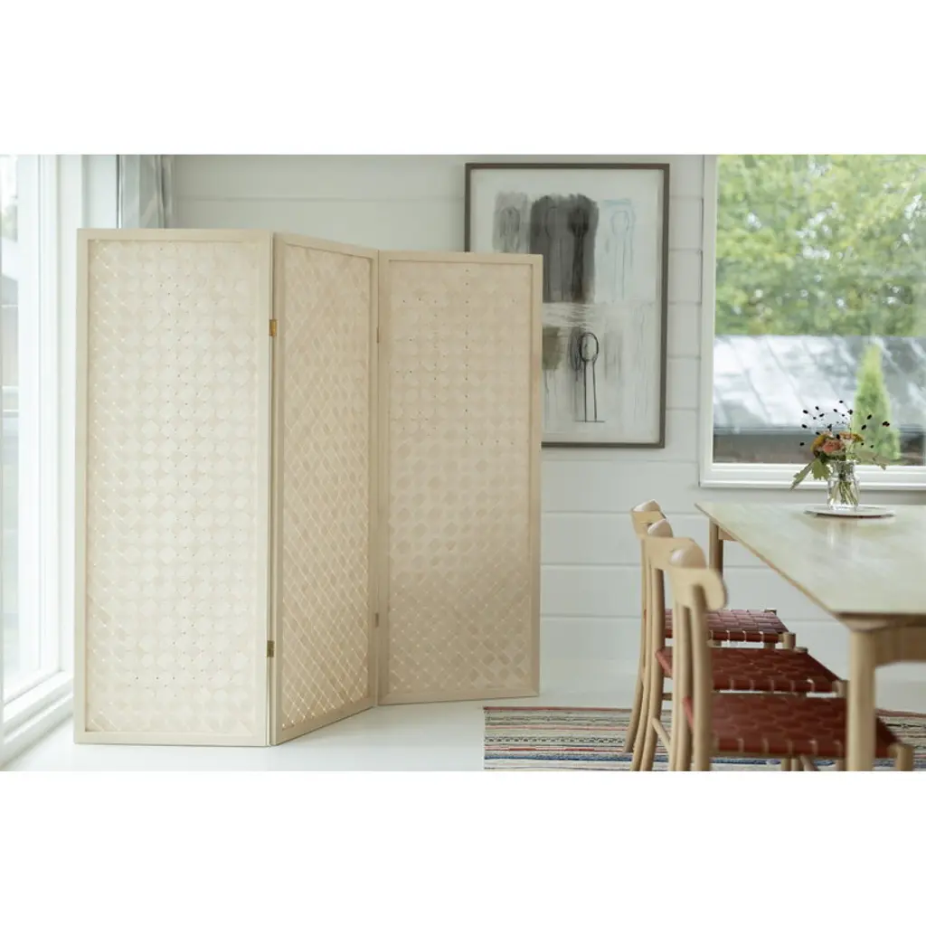 Verso Design's Paikka room divider adds a sense of tranquility and a beautiful touch of birch wood to the room, helping you use the space more efficiently. Designed by Joanna Laajisto, the versatile Paikka room divider is made of three oil-waxed birch panels patterned by the diagonal braid. Thanks to the hinges between the panels, the Paikka can be shaped and folded to fit various spaces. The portable room divider is perfect in a dressing area, office space or nursery, and its attractive appearance adds organic calmness to larger spaces as well.