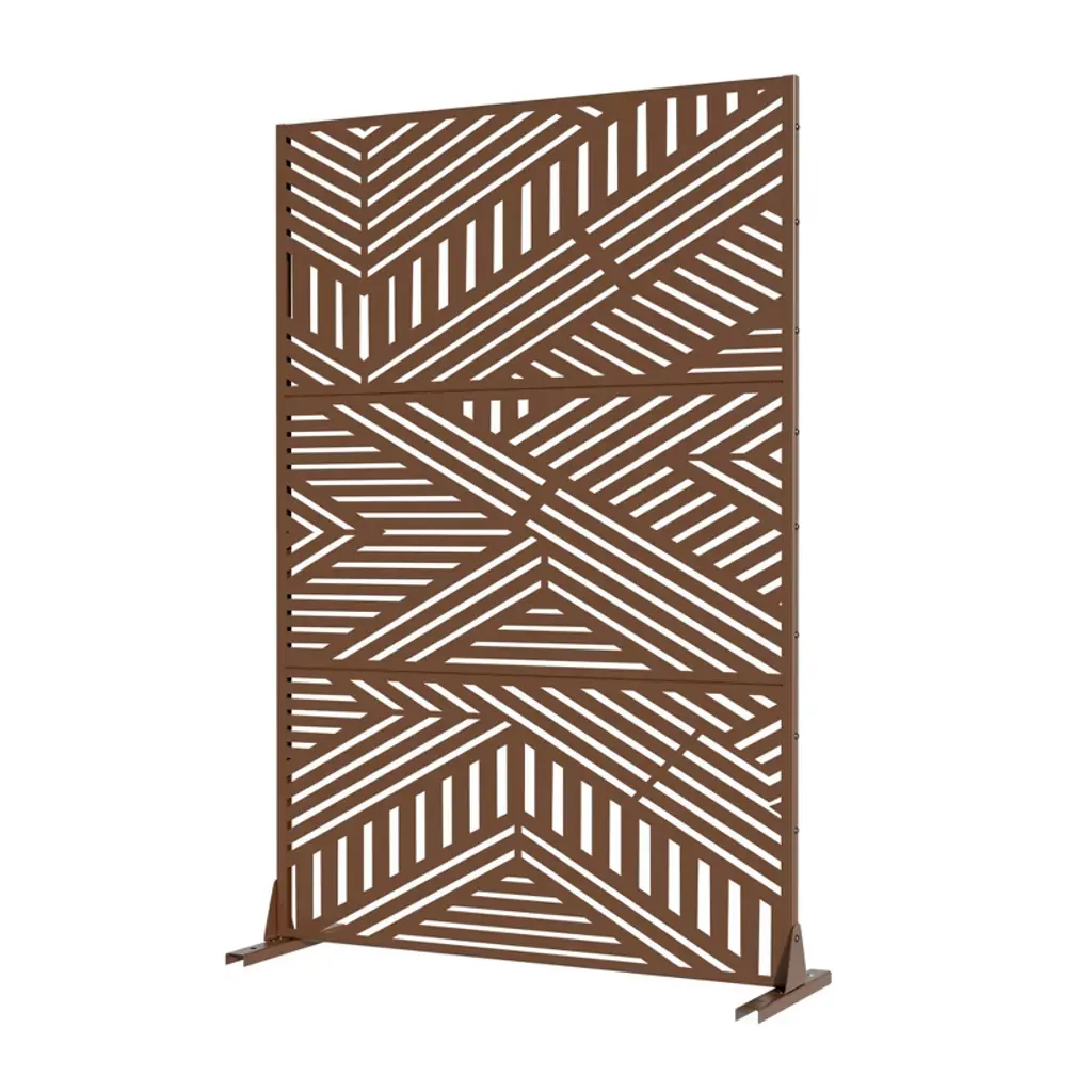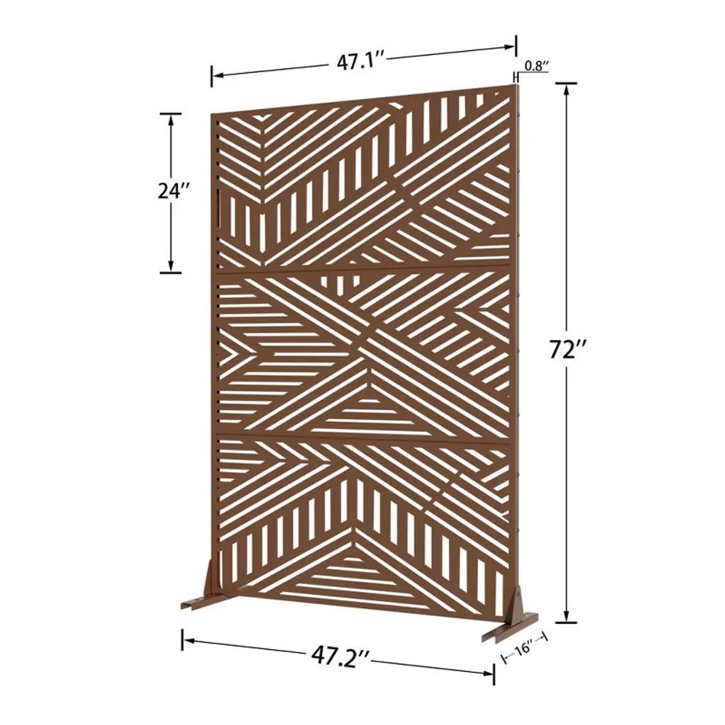 Pexfix 72 In. H X 47 In. W Outdoor Metal Privacy Screen Garden Fence Stripe Pattern Wall Applique In Brown