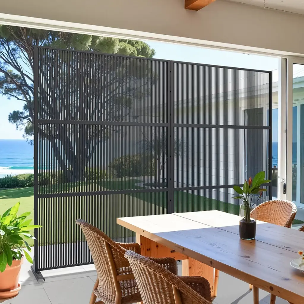 This rattan vertical striped black screen has excellent stability and fixability, making it easy to install and providing the fun of DIY. Its durable materials ensure a long service life, making it a versatile and stylish solution for separating or adding privacy to any space, designed for immediate use on various soft surfaces.