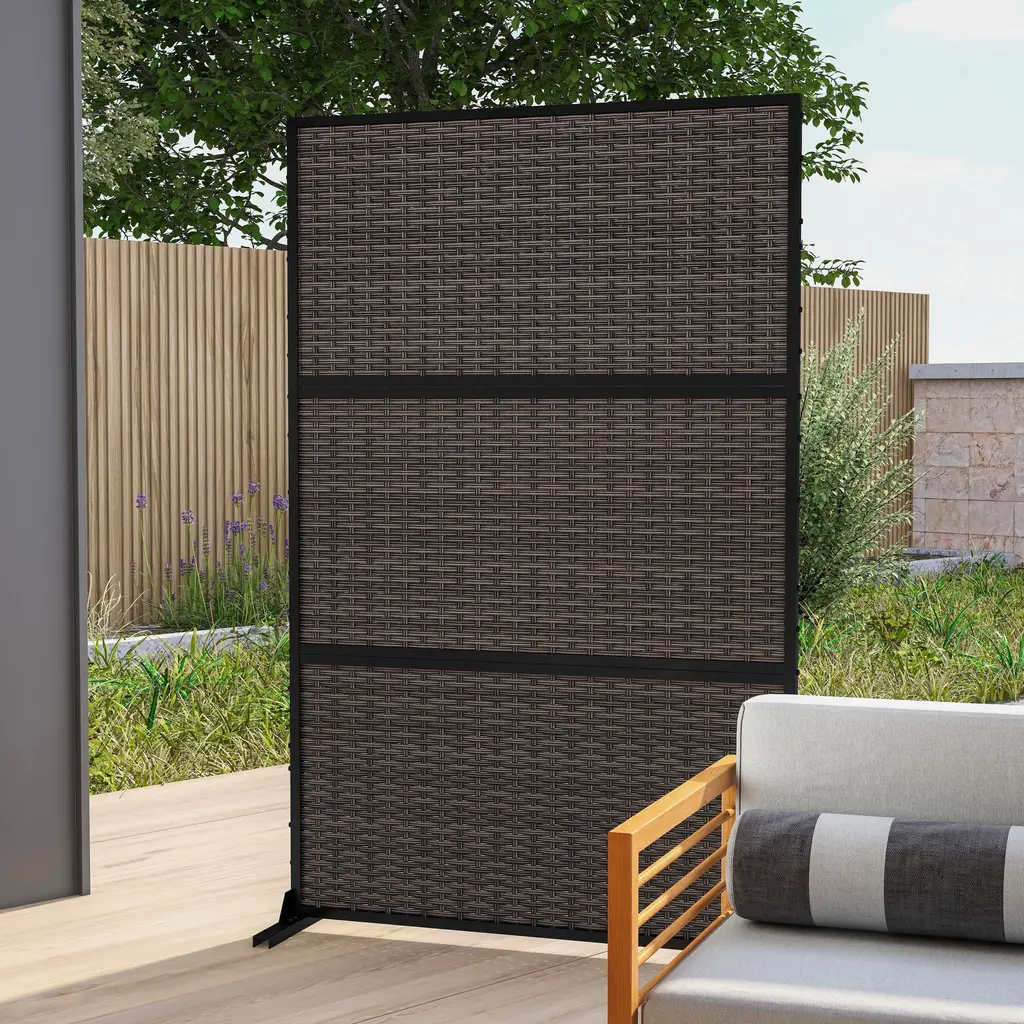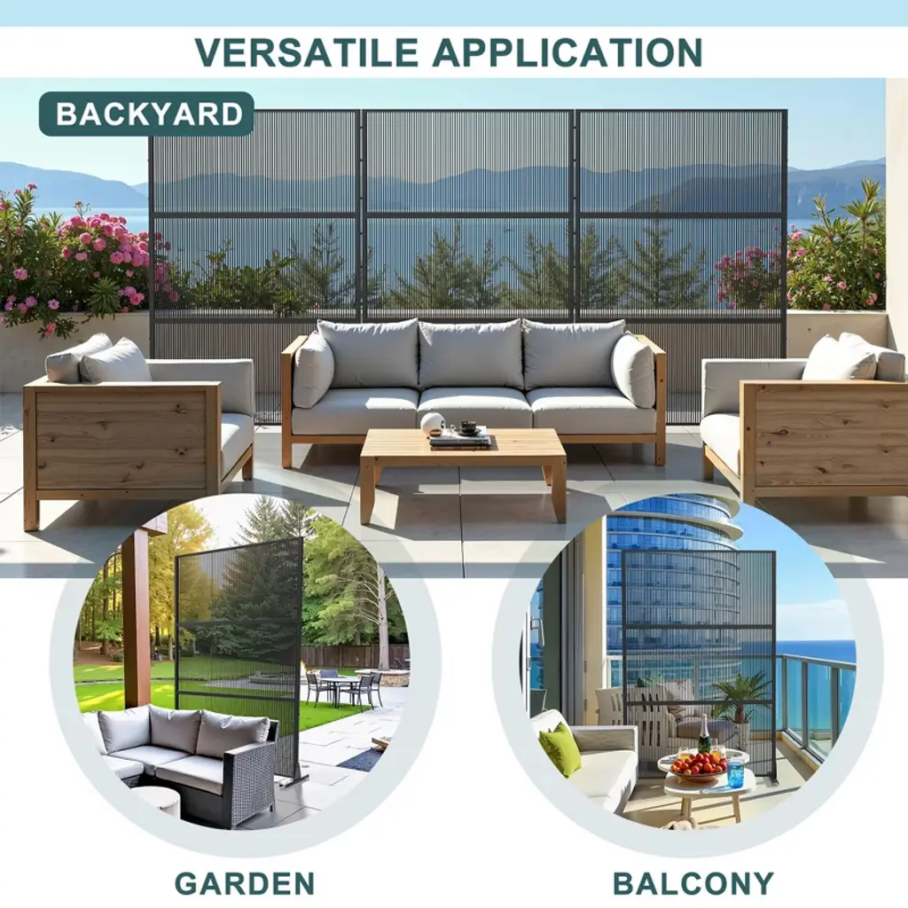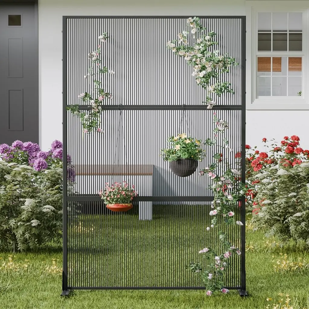 Pexfix 72 In. H X 47 In. W Outdoor Metal Rattan Vertical Stripe Black Screen Garden Fence Brick Pattern Wall